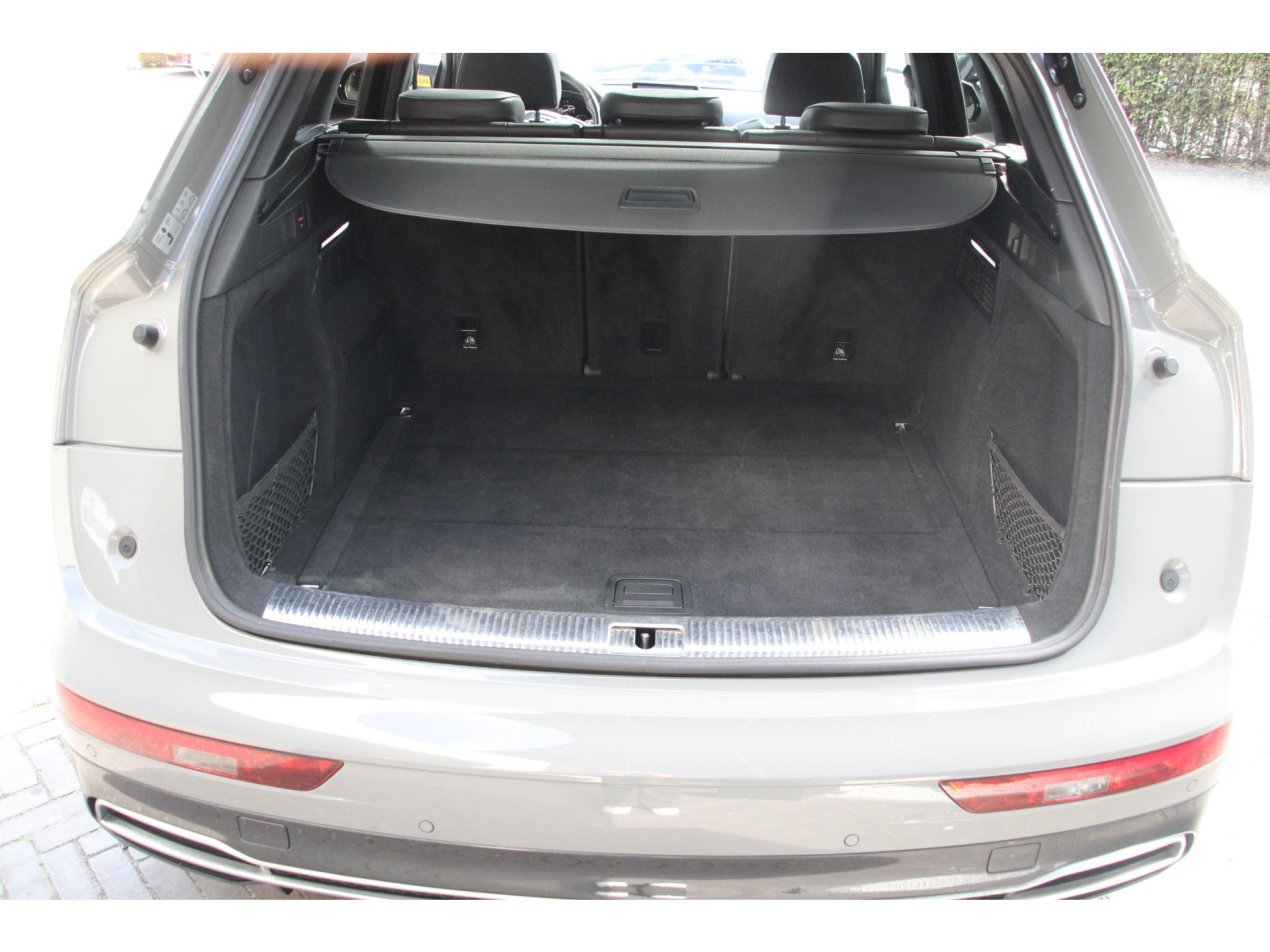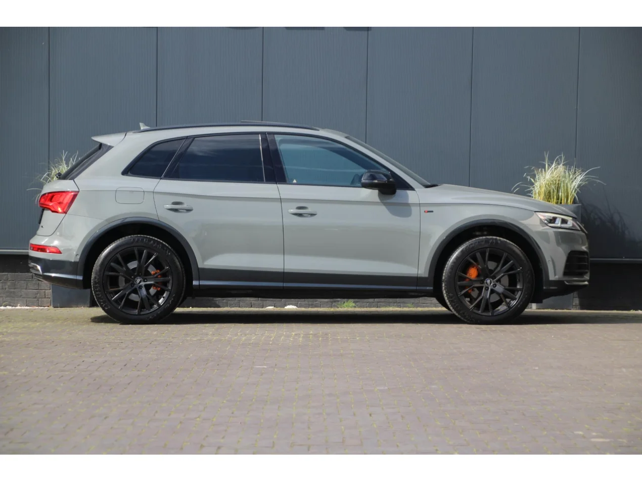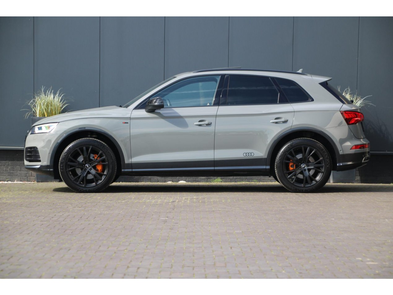 Deze Audi Q5 heeft de uitstraling die je wil. De speciale lak Quantum Grijs is afgewerkt met hoogglans zwarte details zoals de spiegels, de dakrails, de grille en veel meer. Zelfs de 20 inch lichtmetalen wielen zijn in zwart uitgevoerd.