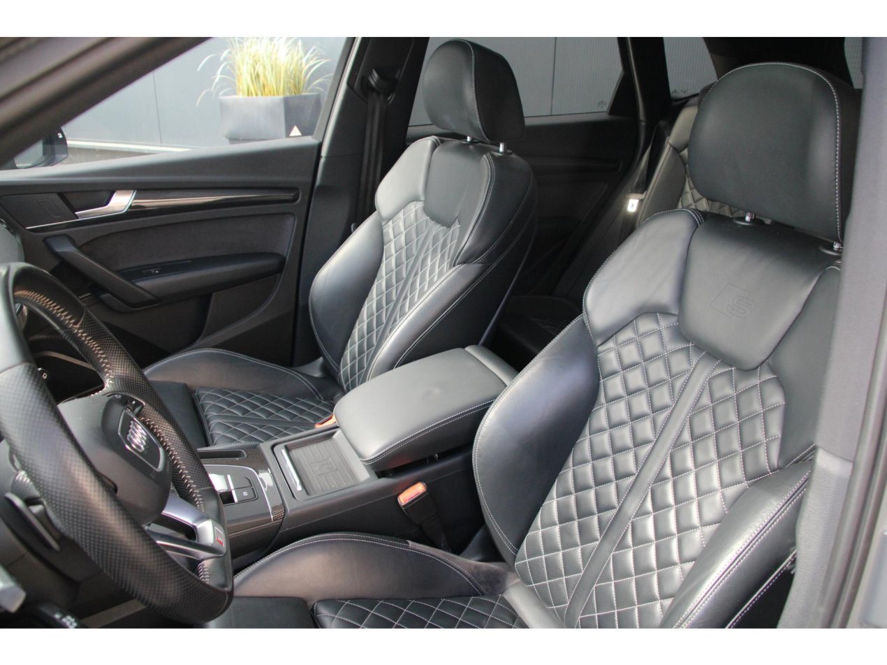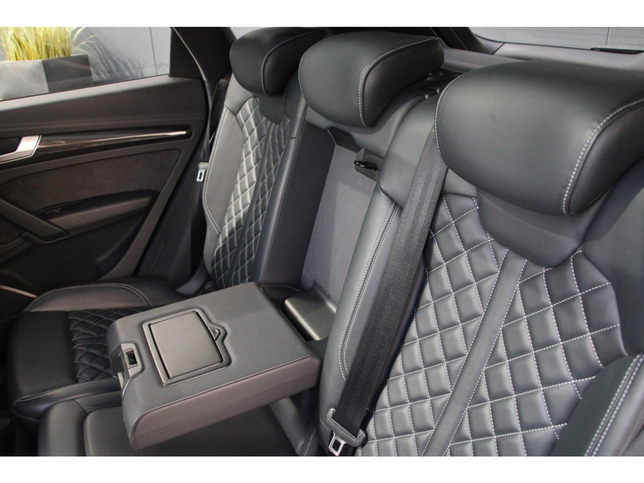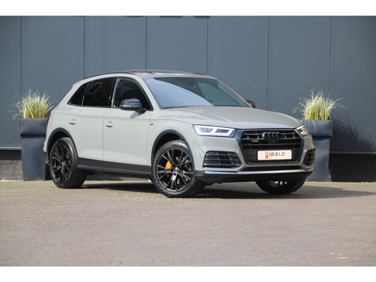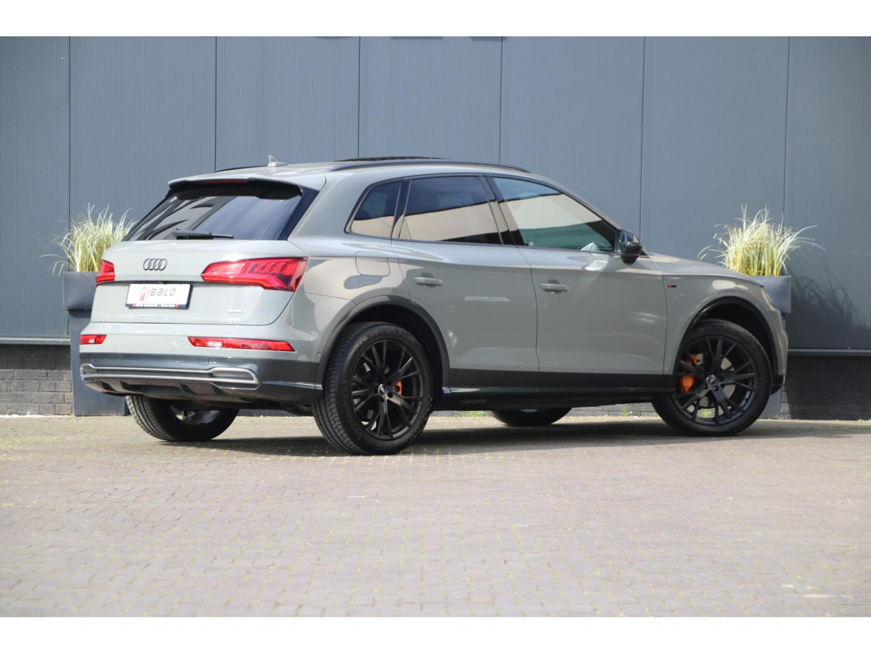 Deze Audi Q5 heeft de uitstraling die je wil. De speciale lak Quantum Grijs is afgewerkt met hoogglans zwarte details zoals de spiegels, de dakrails, de grille en veel meer. Zelfs de 20 inch lichtmetalen wielen zijn in zwart uitgevoerd.