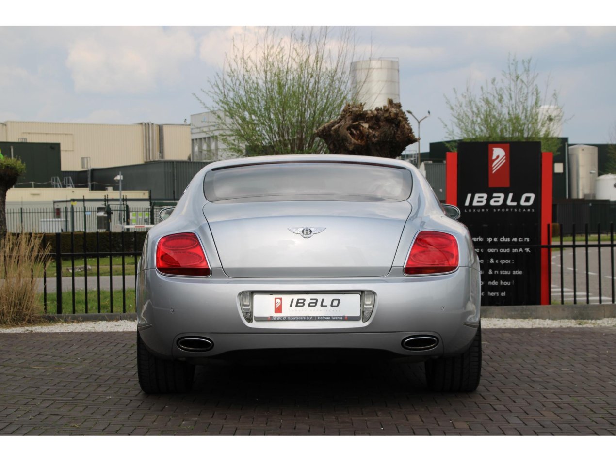 Het model dat we u hier aanbieden komt uit 2005 en heeft pas 51.000 kilometer op de teller. Door de zilveren kleur komen de lijnen van deze sport coupé erg goed uit. Voor het herkenbare gezicht van de Continental GT, achteraan brede heupen en mooie ontwerpdetails zoals de elektrisch bediende spoiler, maar ook de ovale uitlaatpijpen die direct duidelijk maken dat deze Continental beschikt over de W12 motor. Aan de zijkant ziet u gelijk de klassieke coupé lijn. De zevenspaak-Bentley-velgen zijn dik maar overheersen niet.