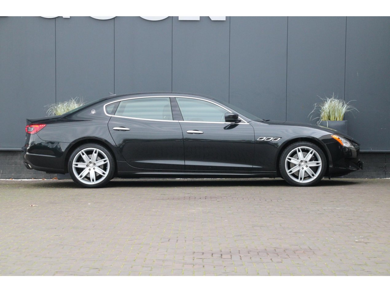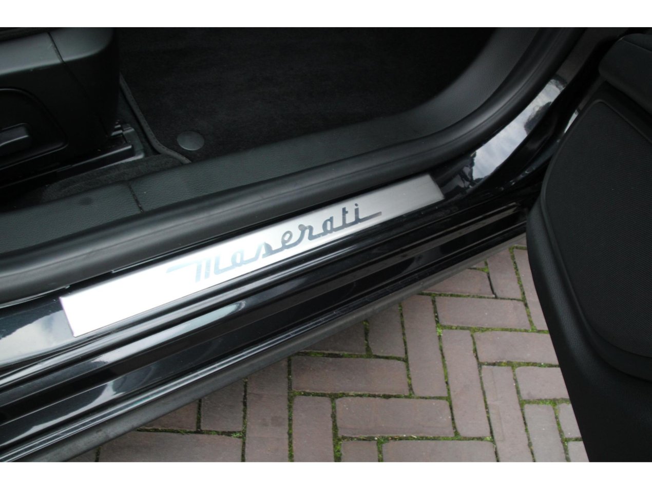 Met zijn gestroomlijnde lijnen en kenmerkende Maserati-grille trekt deze luxe sedan altijd de aandacht. Het interieur is met zorg afgewerkt met hoogwaardige materialen en biedt luxe op maat. De chique zwart metallic exterieurkleur contrasteert fantastisch met de vele chrome details zoals raamlijsten, portiergrepen en de bekende drietand die overal terugkomt. De prachtige 20 inch "Mercurio" velgen maken de uitstraling compleet én er zitten ook nog twee nieuwe Pirelli achterbanden met Maserati codering op.