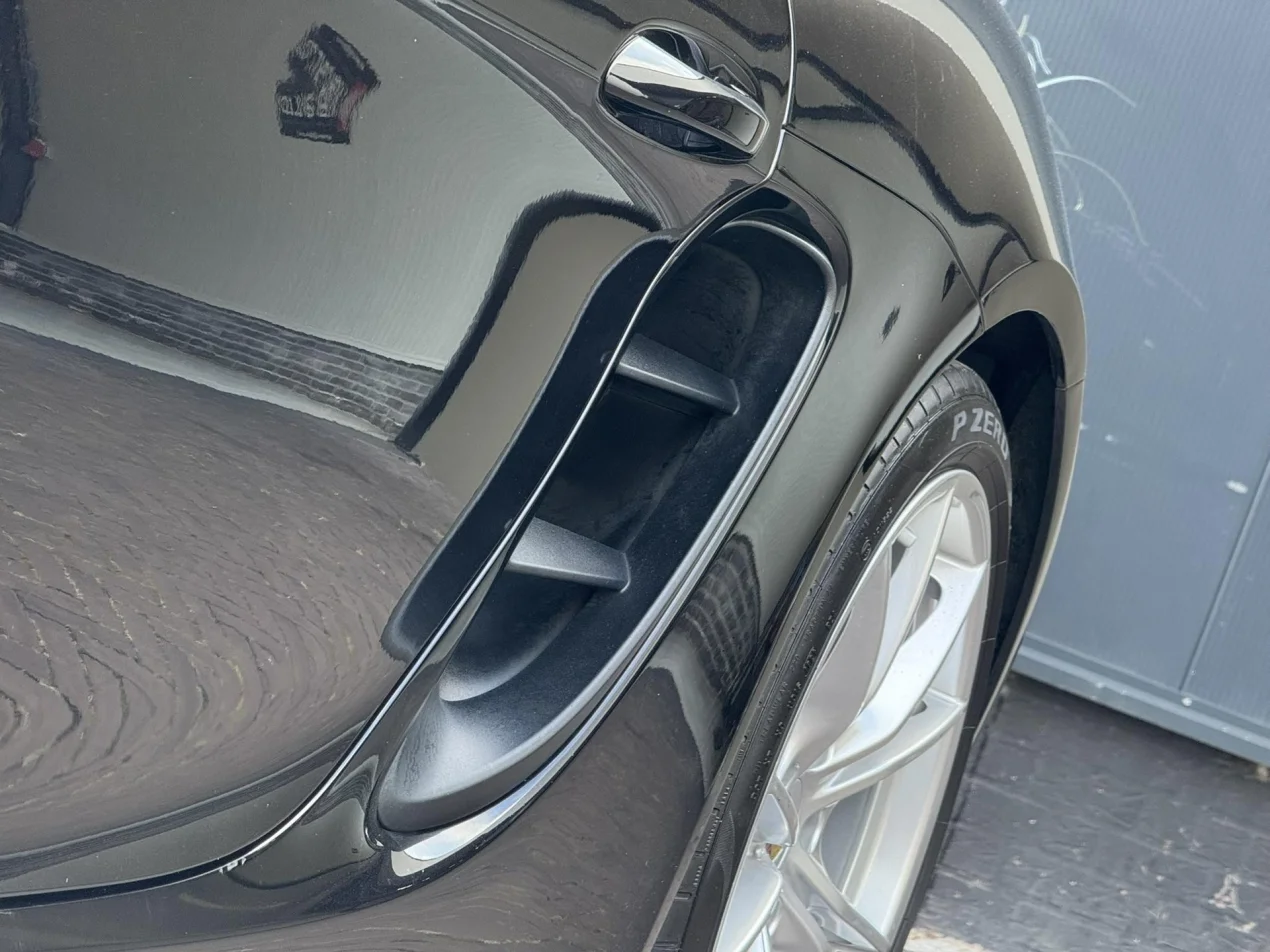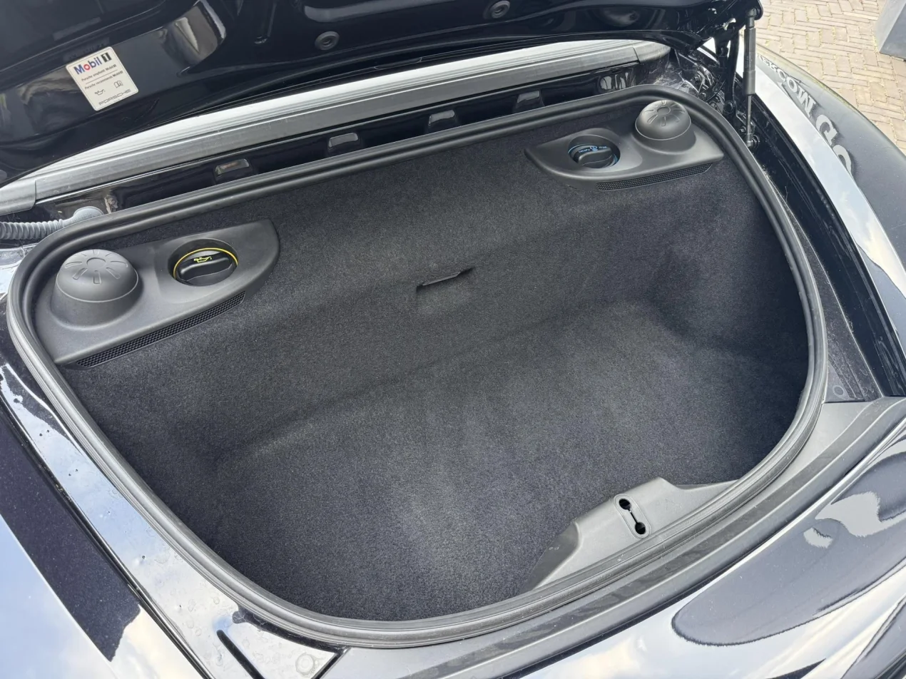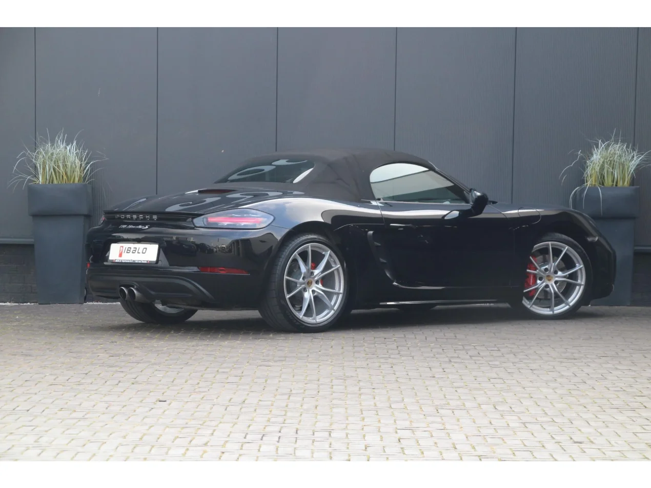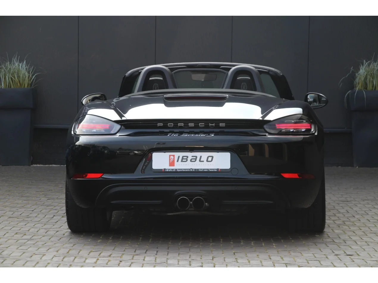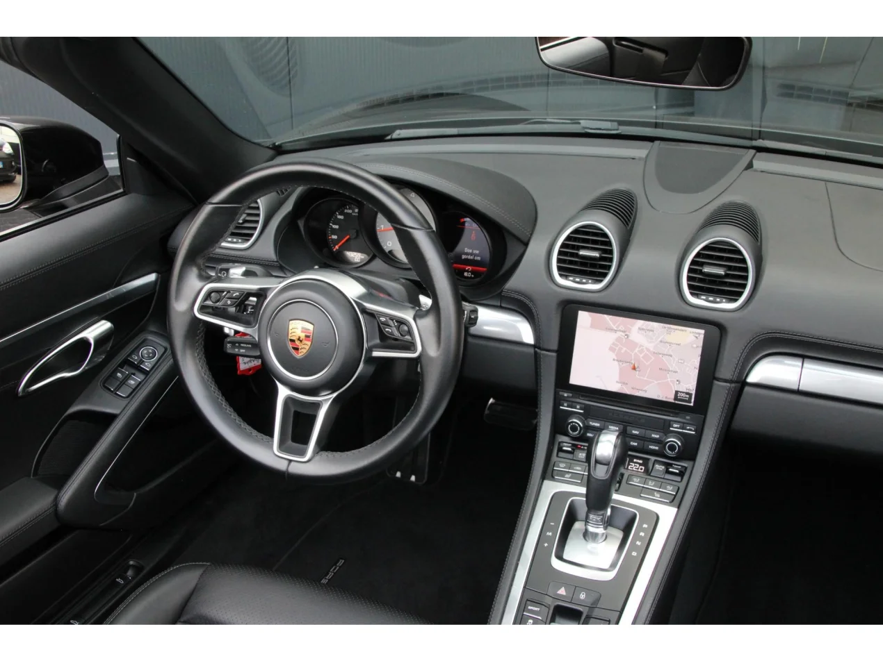 Deze Porsche 718 Boxster S is uitgevoerd in Diepzwart metallic – een kleur die kracht en klasse uitstraalt. De schitterende zilveren Carrera S velgen, de chrome modelaanduiding en de originele sportuitlaat maken het geheel compleet en geven de auto een sportieve, exclusieve uitstraling.