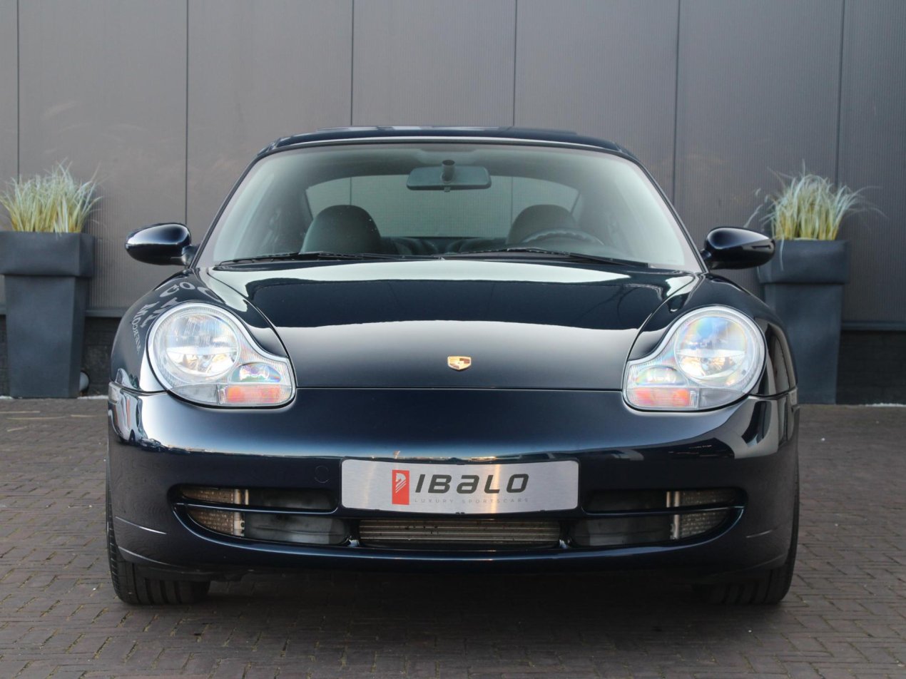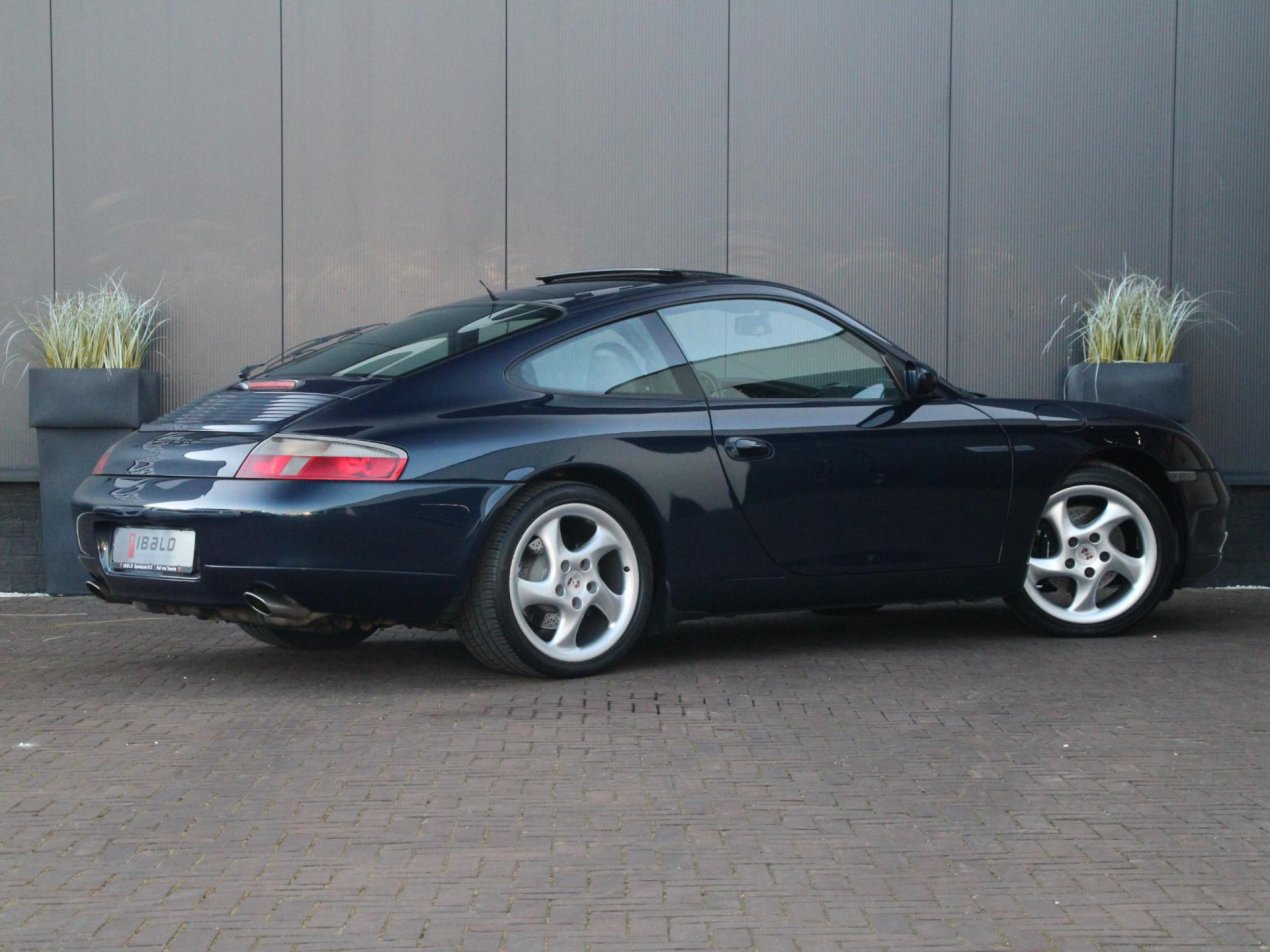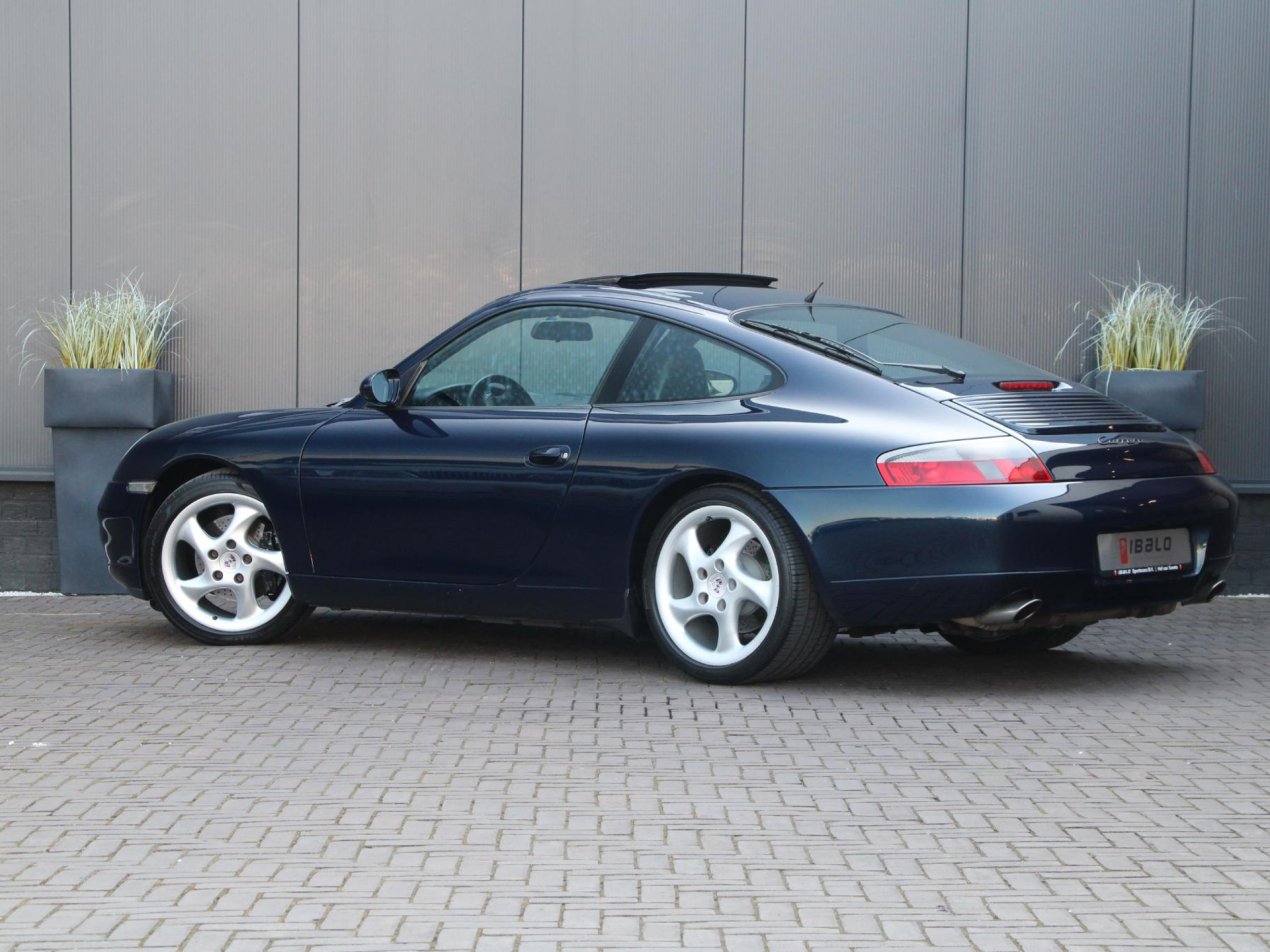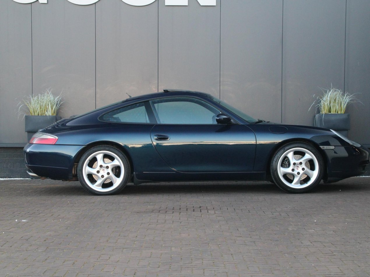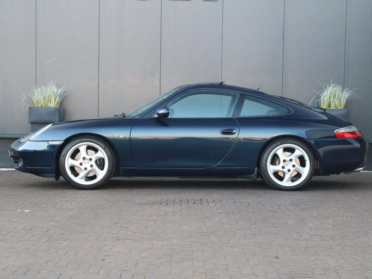 Deze prachtige Porsche 911 Carrera uit 1999 is een tijdloze sportwagen die nog altijd harten sneller laat kloppen. Uitgevoerd in het elegante Ocean Blue Metallic straalt deze 911 pure klasse en sportiviteit uit. De diepe blauwe lak combineert schitterend met het zwarte lederen interieur, wat zorgt voor een stijlvolle en sportieve uitstraling. De 18 inch Turbo Look 1 velgen geven de auto een krachtige stance en benadrukken het iconische silhouet van de 911. Een auto die zowel stilstaand als rijdend indruk maakt.