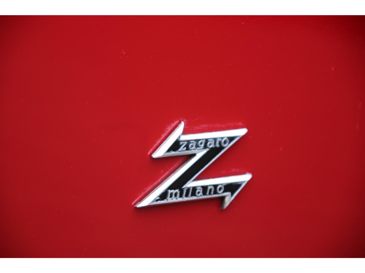 Het interieur is heerlijk doelmatig met een heerlijke ergonomie. Iedere knop zit waar u hem verwachte en er is geen schakelaar teveel geplaatst tijdens de ontwikkeling. Pure doelmatigheid. De stoelen zien er niet alleen heel gaaf uit maar zitten ook heerlijk. Ze zijn bekleed met beige kleurig leder dat een prachtig contrast vormt met het rode exterieur. De hemel en deurpanelen zijn eveneens met beige leder bekleed en verkeren eveneens in goede staat. De instrumenten zijn afkomstig van Veglia en voorzien van een prachtig lettertype. Dat niet alleen ze functioneren ook allen zoals het hoort en zijn helemaal origineel. De stoelen en het stuur zijn ontworpen door Zagato Design, dat zal ook verklaren waarom ze een heerlijk bijzonder uiterlijk hebben.