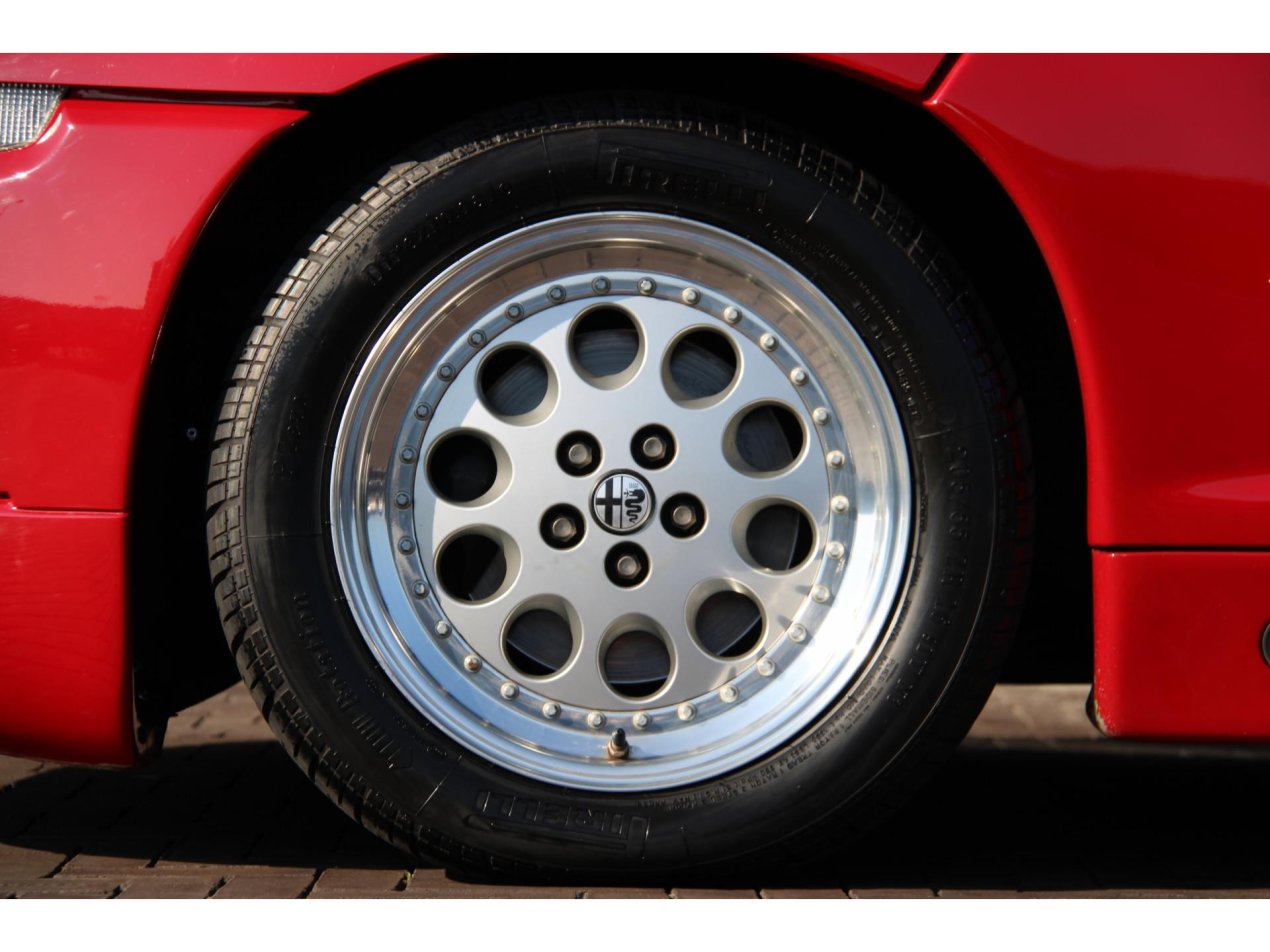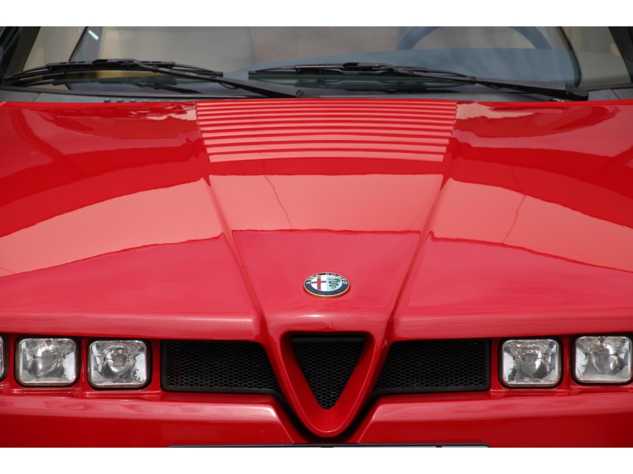 Dit exemplaar werd nieuw geleverd in Duitsland in 1992 en is door ons recentelijk technisch tot in de puntjes klaargemaakt. De auto heeft nog maar 58.121 kilometer gereden en dat is haar aan te zien. De Alfa Romeo SZ is altijd een auto voor liefhebbers geweest en zo is er ook met dit exemplaar omgesprongen. De carrosserie en de lak zien er keurig verzorgd uit. De plaatdelen sluiten overal keurig aan en ook de originele Speedline wielen verkeren in zeer goede staat en zijn voorzien van Pirelli banden in de correcte maten.