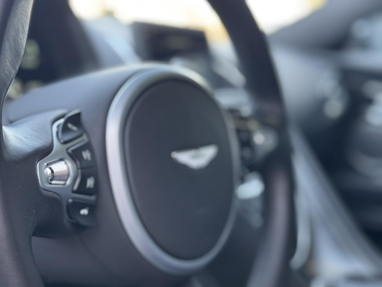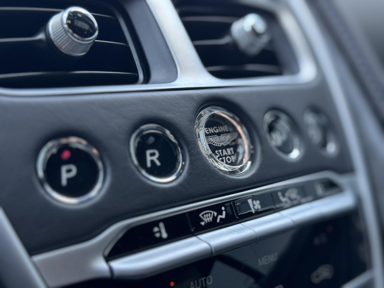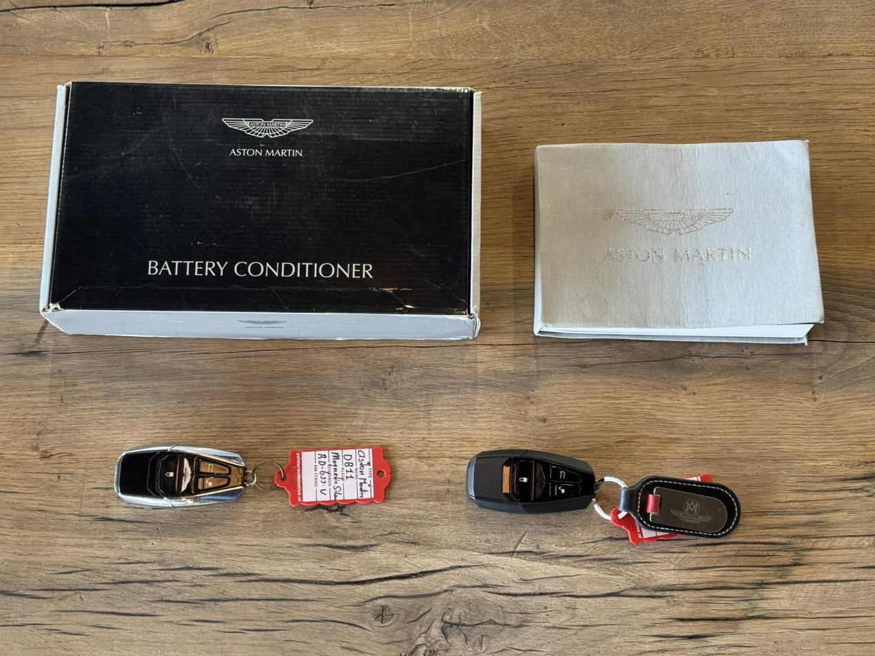 De uitvoering in Magnetic Silver met het zeer duidelijke metallic-effect staat erg chique bij de Obsidian Black interieurafwerking. Vanzelfsprekend kunnen de grove stiknaden waar Aston Martin om bekend staat niet ontbreken. De afwerking van de panelen in het dashboard en de portieren zijn uitgevoerd in 'Flaked Carbon' en uiteraard zijn er zeer veel opties aanwezig zoals de uitgebreid elektrisch verstelbare stoelen met memory, verwarming én ventilatie. Parkeren wordt ondanks de lage raampartij een gemak, door het 360 graden camera-systeem en alle te verwachten opties zijn present tot aan de ingebouwde garagedeuropener.
