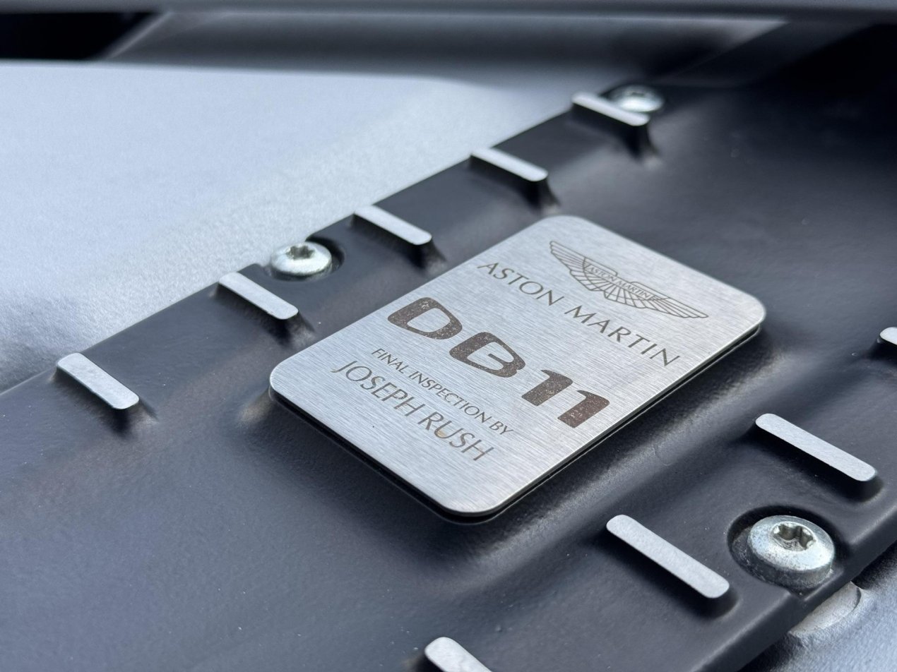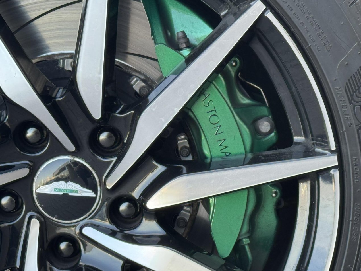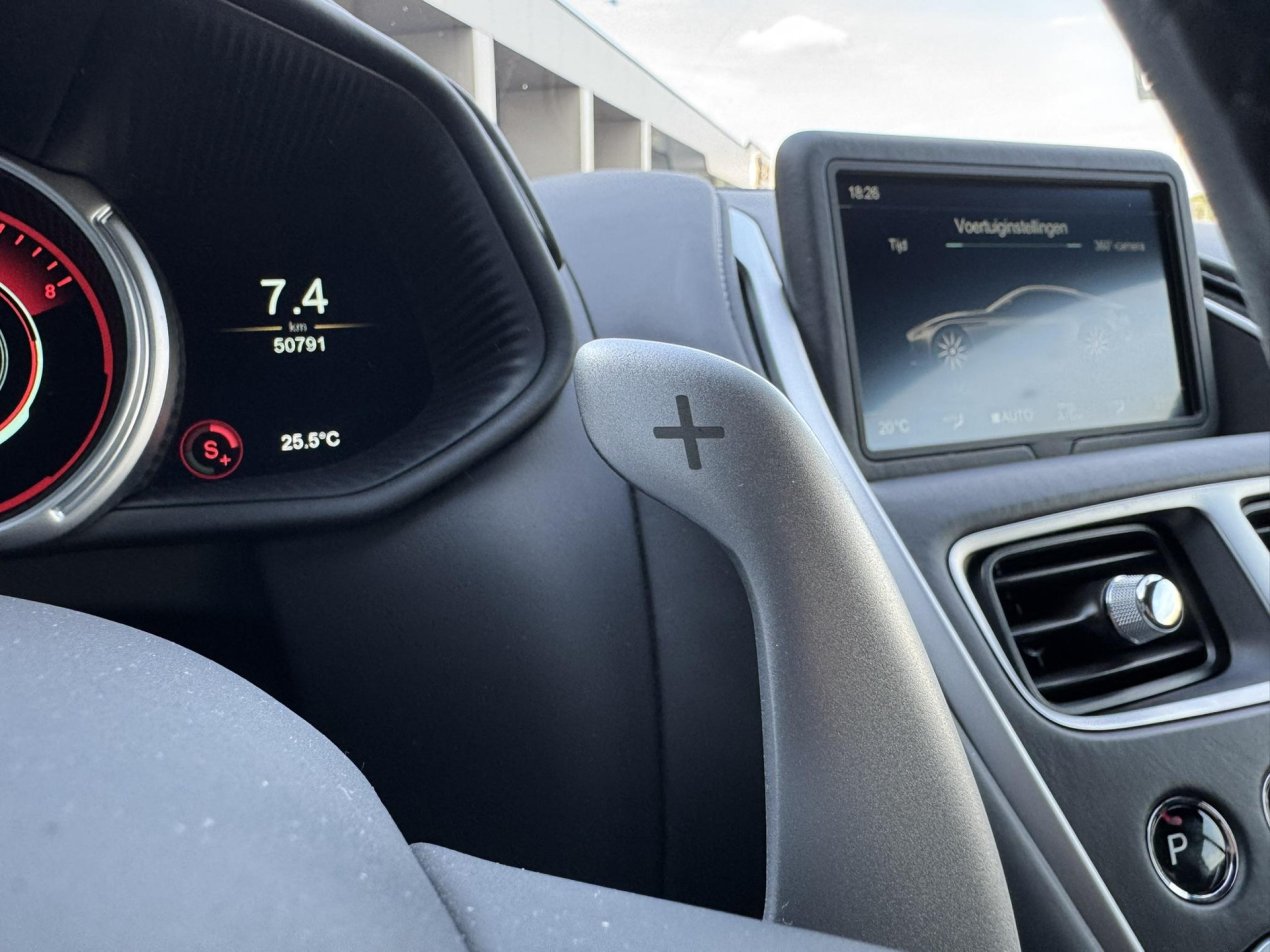 De uitvoering in Magnetic Silver met het zeer duidelijke metallic-effect staat erg chique bij de Obsidian Black interieurafwerking. Vanzelfsprekend kunnen de grove stiknaden waar Aston Martin om bekend staat niet ontbreken. De afwerking van de panelen in het dashboard en de portieren zijn uitgevoerd in 'Flaked Carbon' en uiteraard zijn er zeer veel opties aanwezig zoals de uitgebreid elektrisch verstelbare stoelen met memory, verwarming én ventilatie. Parkeren wordt ondanks de lage raampartij een gemak, door het 360 graden camera-systeem en alle te verwachten opties zijn present tot aan de ingebouwde garagedeuropener.