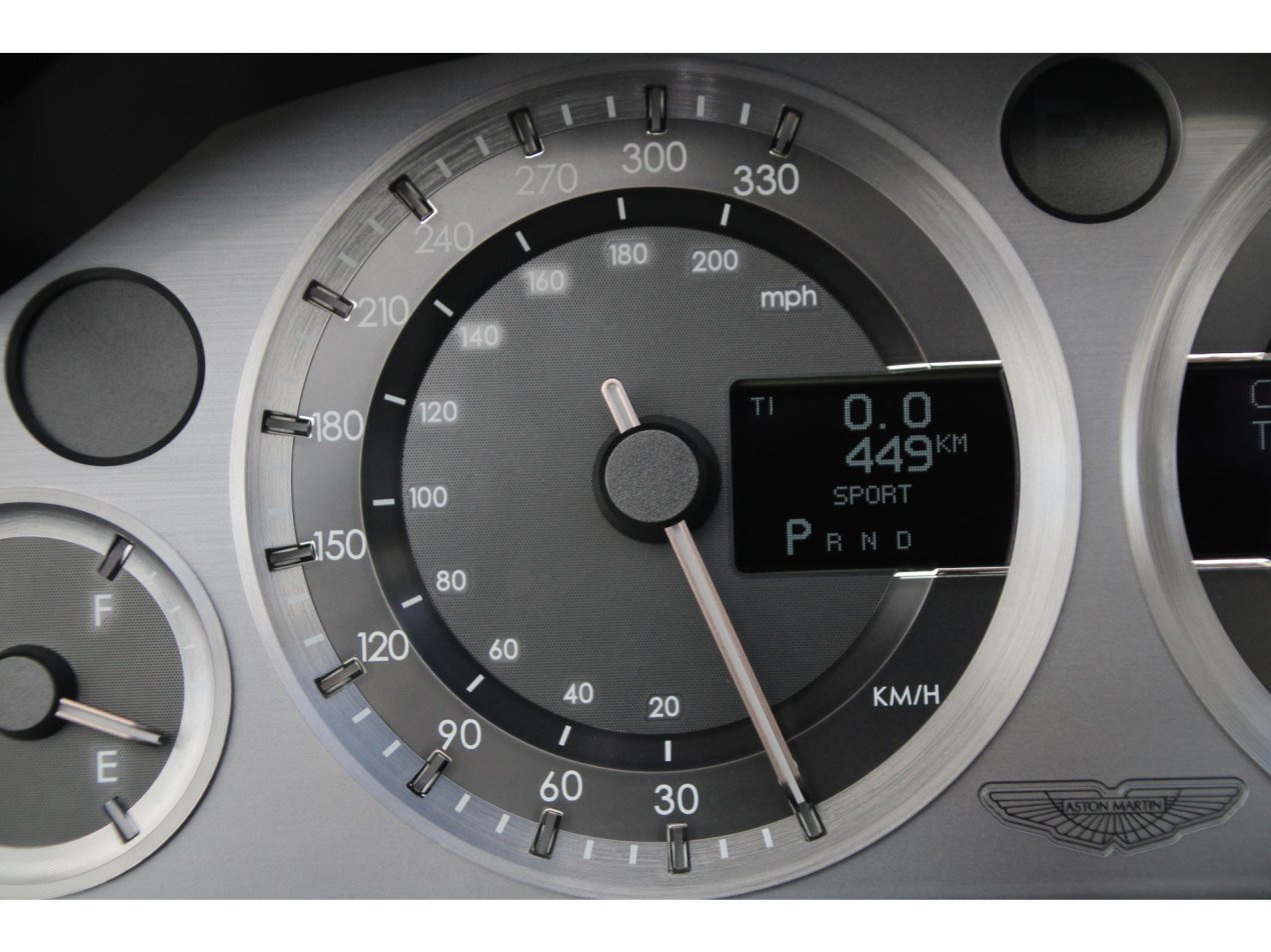 Maar stilstand is achteruitgang dus hebben we voor u de auto helemaal opnieuw in bedrijf gesteld. Zo heeft ze een grote beurt gehad, zijn we er heel voorzichtig wat rondjes mee gaan rijden en hebben we nieuwe banden gemonteerd. Alles om er voor te zorgen dat deze DB9 eindelijk het leven kan krijgen dat ze verdiend. Want Aston Martin heeft er destijds alles aan gedaan om de DB9 tot een ultiem rijdende auto te maken. De DB9 wordt aangedreven door een 5,9 liter grote V12 die in dit geval 450 pk levert. De motor is gekoppeld aan een automatische transmissie van ZF en schakelt heerlijk soepel. De zitpositie is dankzij de heerlijk zittende sportstoelen eveneens perfect en omdat de DB9 een échte 2+2 is kunnen er ook nog twee kinderen of extra bagage op de achterbank. Een “Grand Tourer” van het zuiverste water.