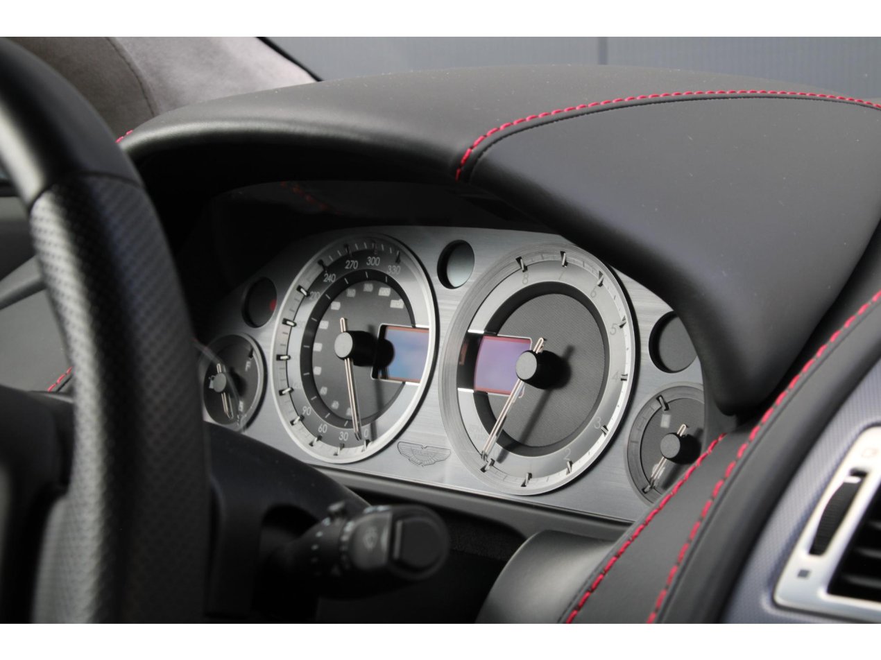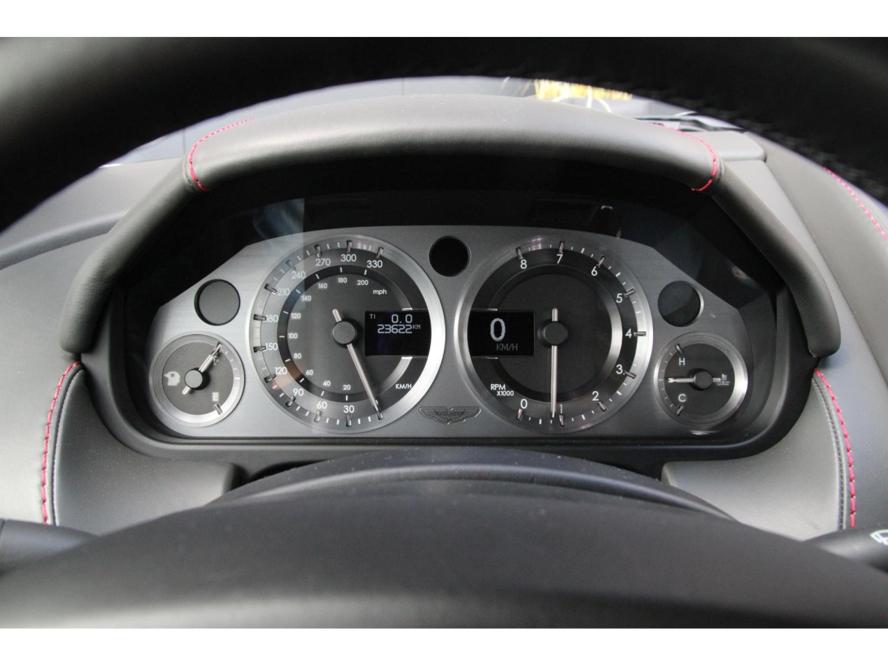 Binnenin vind je de ingetogen luxe die Aston Martin zo uniek maakt. Hoogwaardig leder met grove stiksels, aluminium details en een tijdloos dashboarddesign zorgen voor een ambiance die ingetogen maar zeer stijlvol is. Geen overdaad, maar een duidelijke focus op de bestuurder en de rijervaring. Mooie materialen zoals aluminium draaiknoppen, alcantara hemelbekleding en een volledig in leder bekleed dashboard zorgen voor een echte premium beleving.