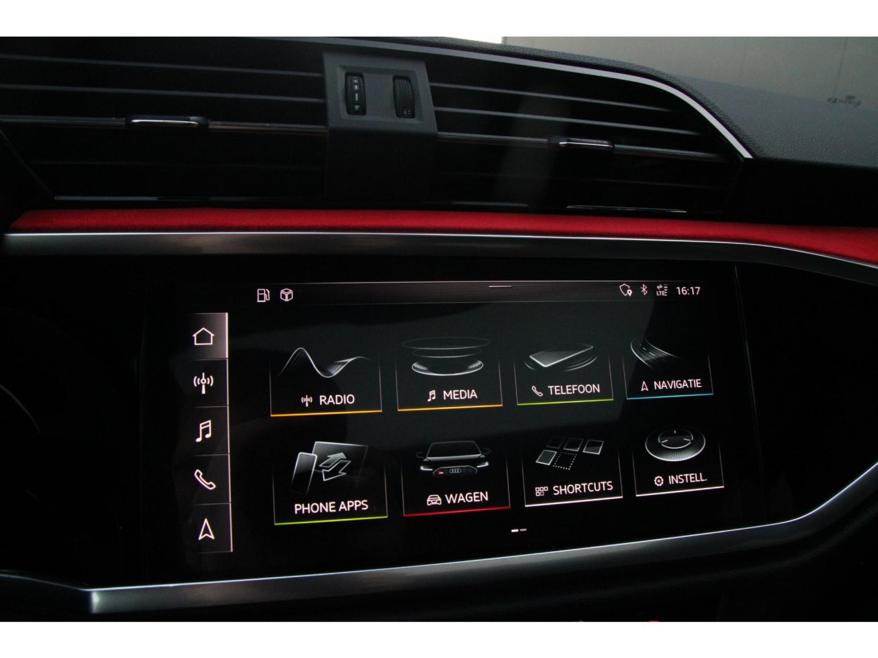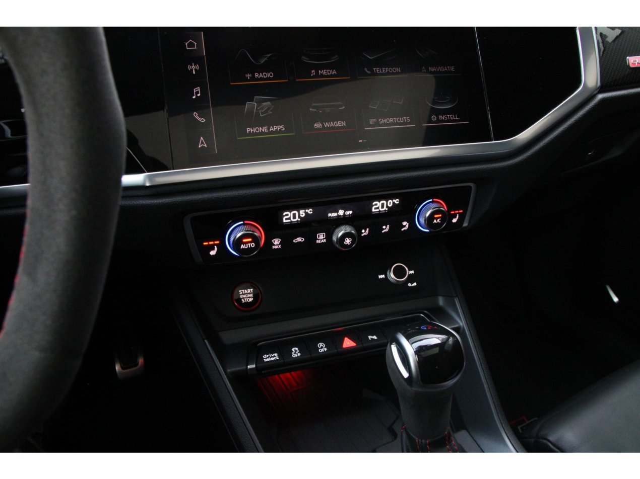 Deze RS Q3 is zeer compleet uitgerust en voorzien van nagenoeg alle gewilde opties. Het premium audiosysteem, Apple CarPlay en Android Auto zorgen voor optimale connectiviteit, terwijl de elektronische climate control met aparte regeling achterin het comfort verhoogt. De elektrisch verstelbare, verwarmde voorstoelen bieden uitstekende ondersteuning, en dankzij voorzieningen als dodehoekdetectie, matrix LED-koplampen, botsherkenning en een rondomzichtcamera is de veiligheid op topniveau. Extra getint glas, sfeerverlichting, de sportuitlaat en het carboninterieur maken de uitrusting zowel praktisch als exclusief.