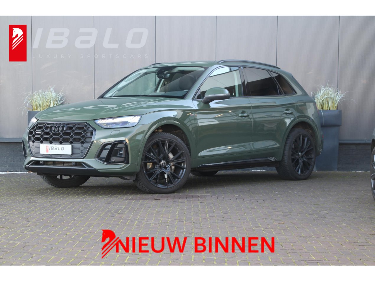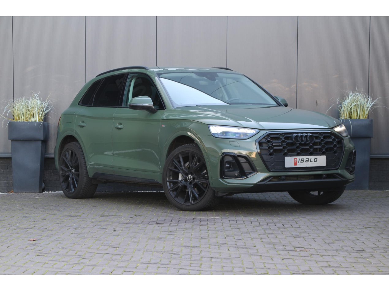 In de exclusieve kleur District Groen metallic presenteert deze Audi Q5 zich als een onderscheidende, moderne SUV met een premium uitstraling. Dit facelift-model uit 2021 oogt krachtig en verfijnd, mede dankzij de zwarte exterieuraccenten en het sportieve S-line pakket. De strakke lijnen, scherpe bumpers en imposante 21 inch zwarte lichtmetalen velgen maken dit een auto die gezien mag worden – stijlvol, zelfverzekerd en tijdloos.