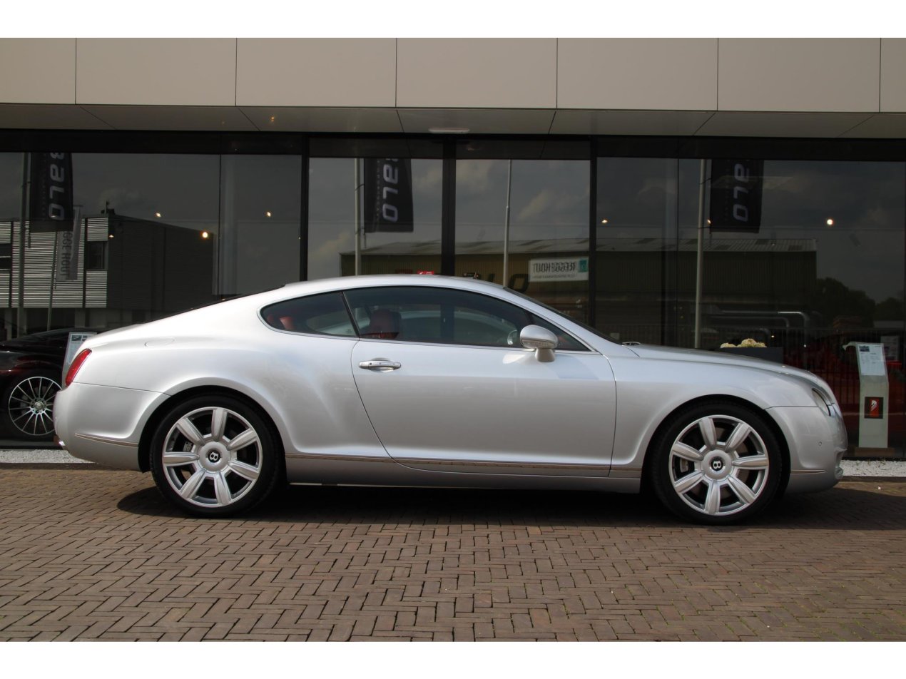 Het model dat we u hier aanbieden komt uit 2005 en heeft pas 51.000 kilometer op de teller. Door de zilveren kleur komen de lijnen van deze sport coupé erg goed uit. Voor het herkenbare gezicht van de Continental GT, achteraan brede heupen en mooie ontwerpdetails zoals de elektrisch bediende spoiler, maar ook de ovale uitlaatpijpen die direct duidelijk maken dat deze Continental beschikt over de W12 motor. Aan de zijkant ziet u gelijk de klassieke coupé lijn. De zevenspaak-Bentley-velgen zijn dik maar overheersen niet.