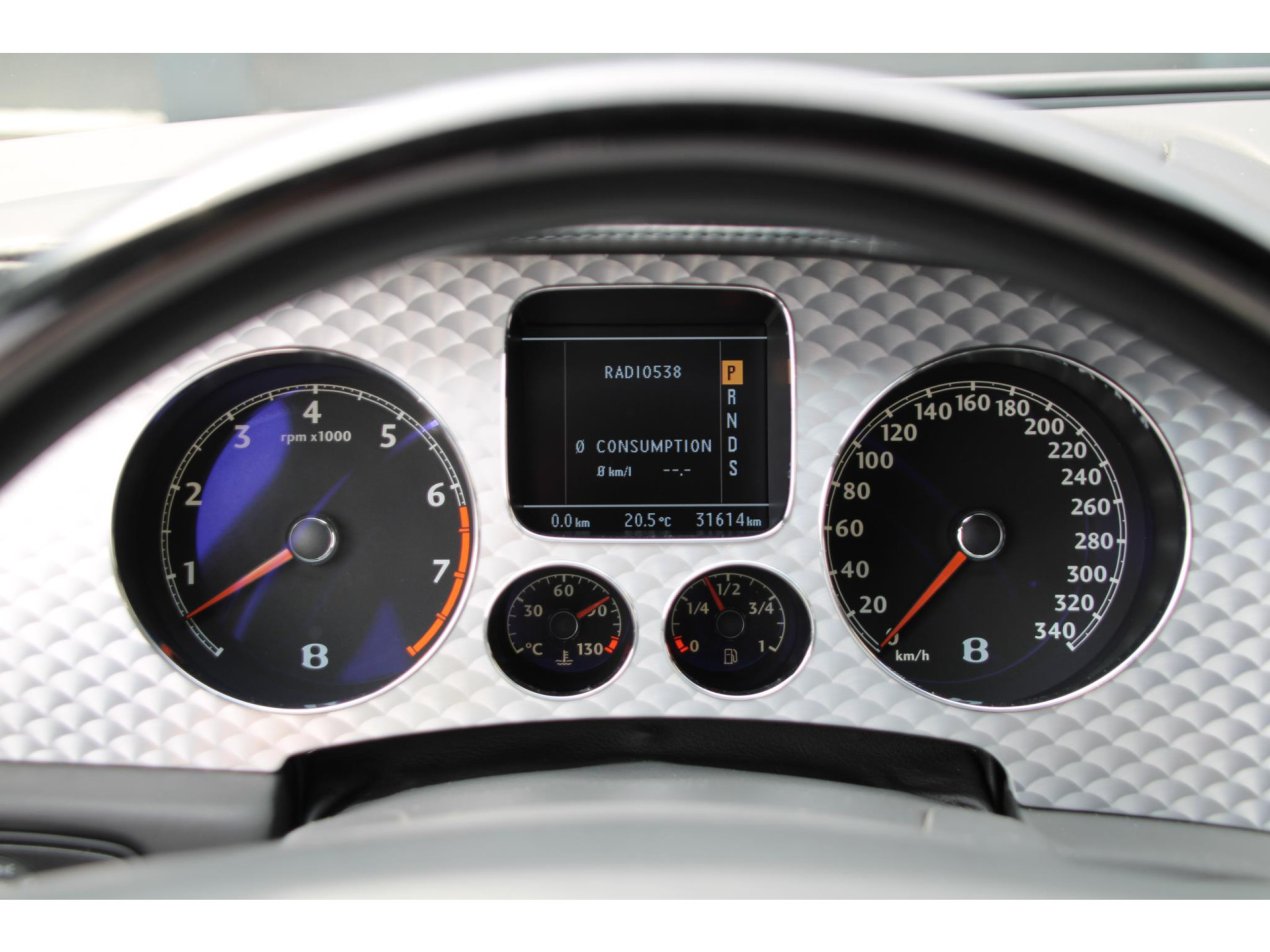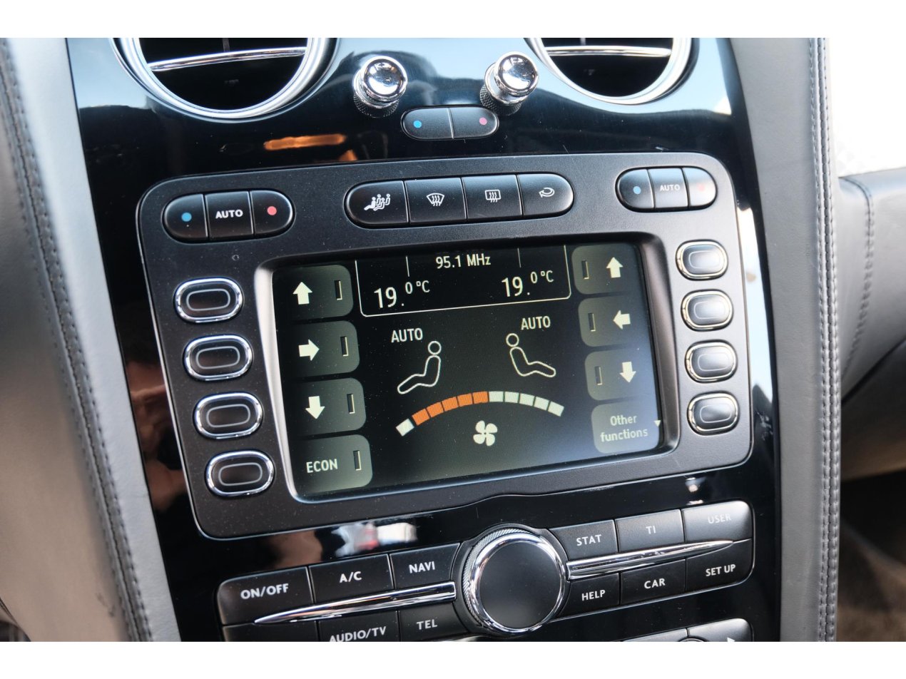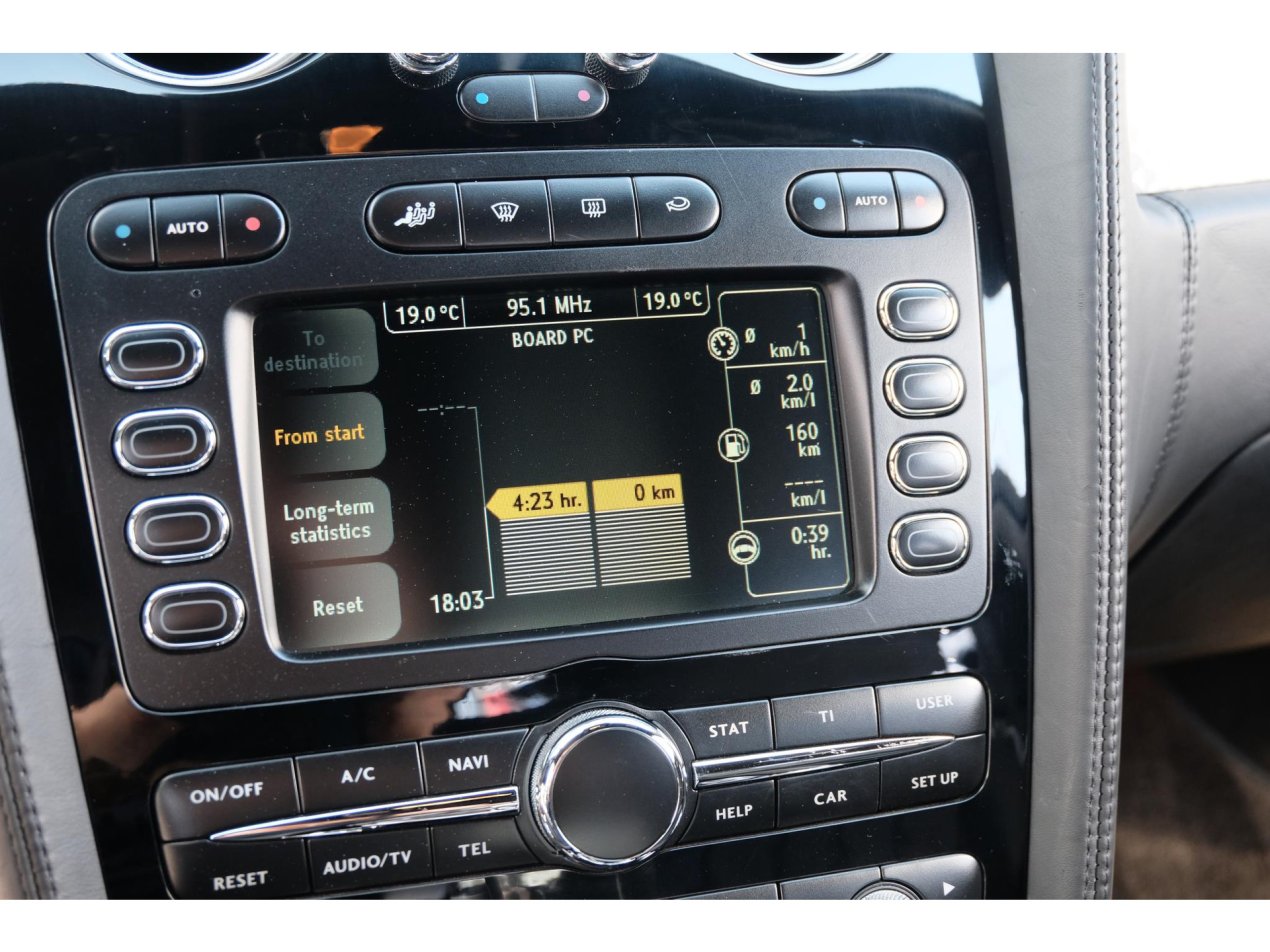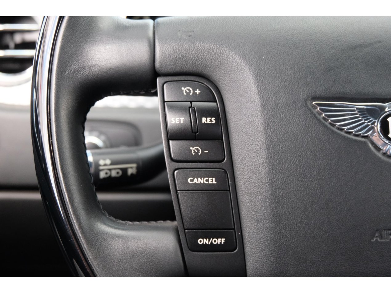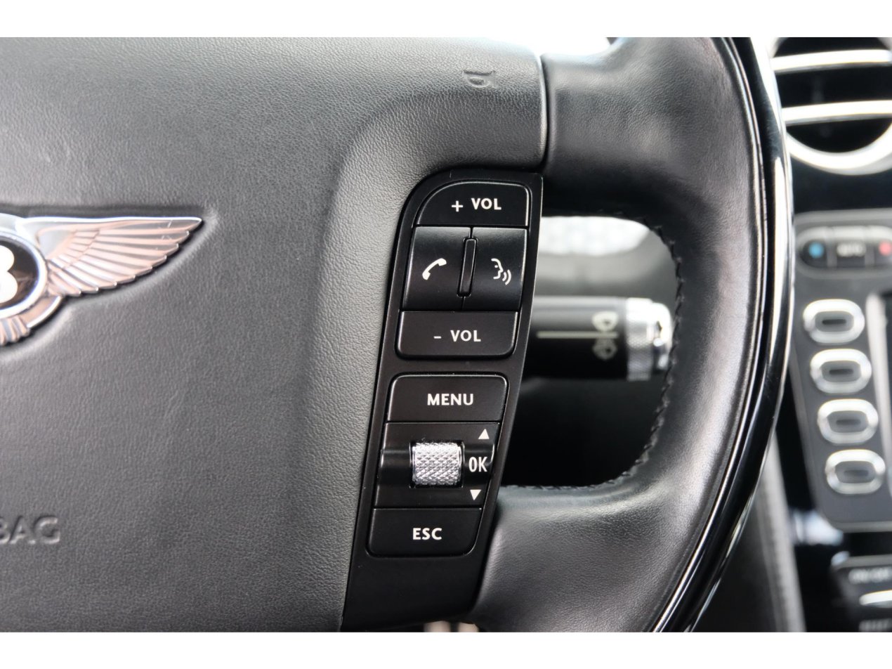 Zodra je plaats neemt achter het stuur van deze auto valt het hoogglans zwarte stuur meteen op. Achter het stuur zijn de schakelflippers waarmee je handmatig de versnellingsbak kan bedienen niet te missen. Op het stuur zitten vele knoppen via waar het infotainment systeem te bedienen is en via waar je gebruik kan maken van de aanwezige cruise control. Met de lage kilometerstand van nog geen 32.000km is deze auto helemaal klaar voor een hoop mooie, comfortabele kilometers. De gelamineerde ruiten van deze prachtige Bentley zijn in de loop der jaren wat minder mooi geworden. De prijs van deze 12 cilinder is daar op gebaseerd. Kwalitatief geen enkele invloed.