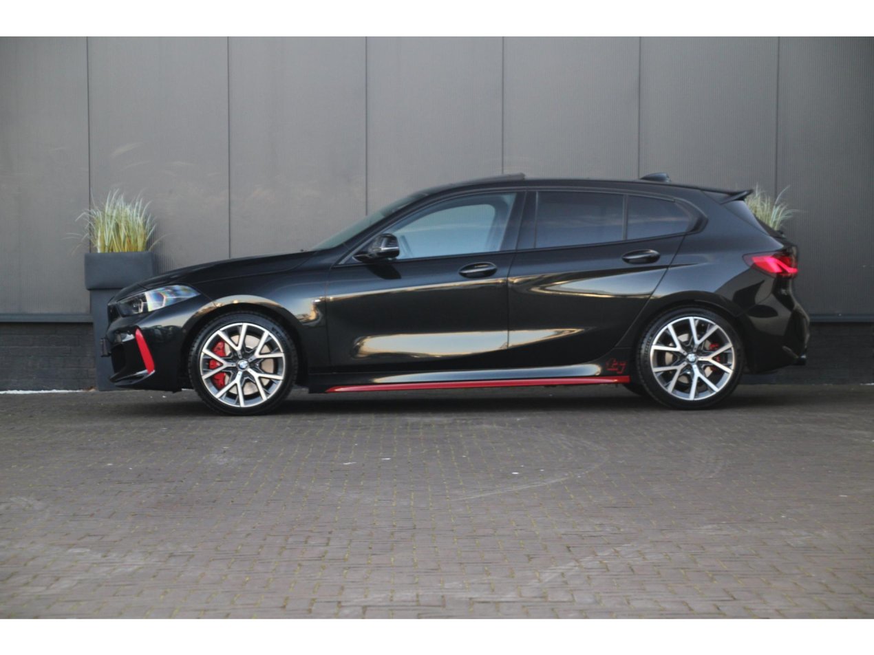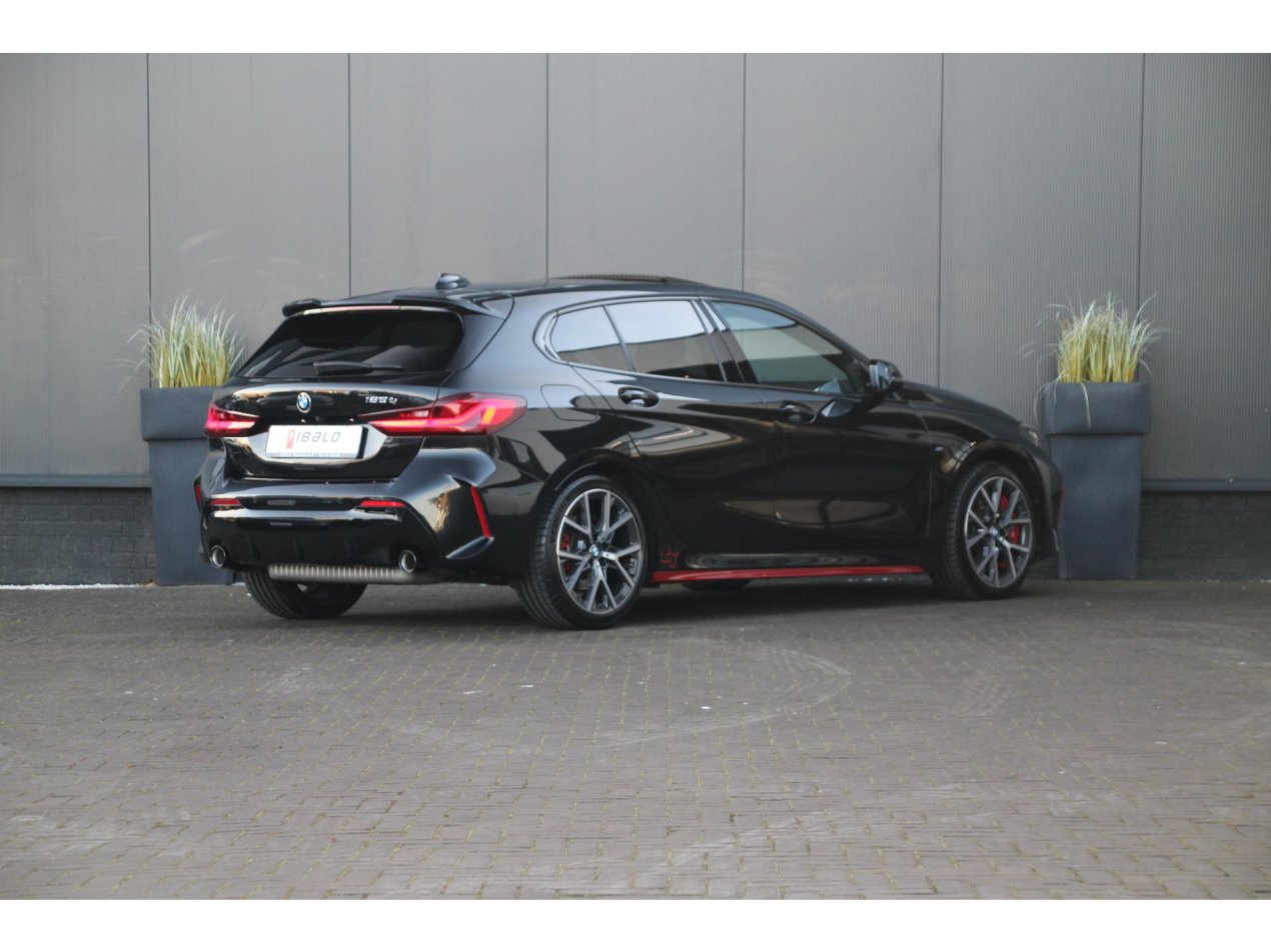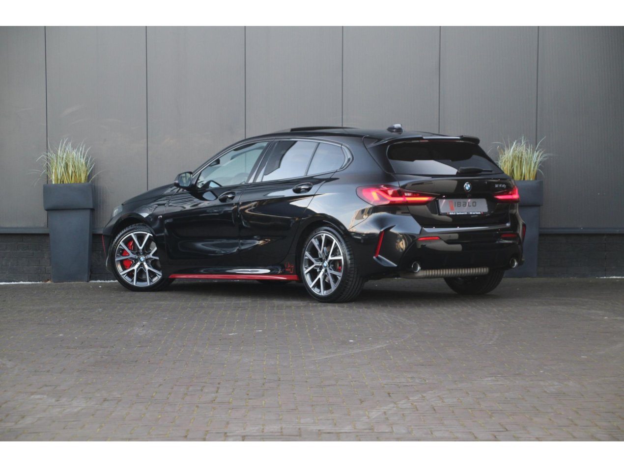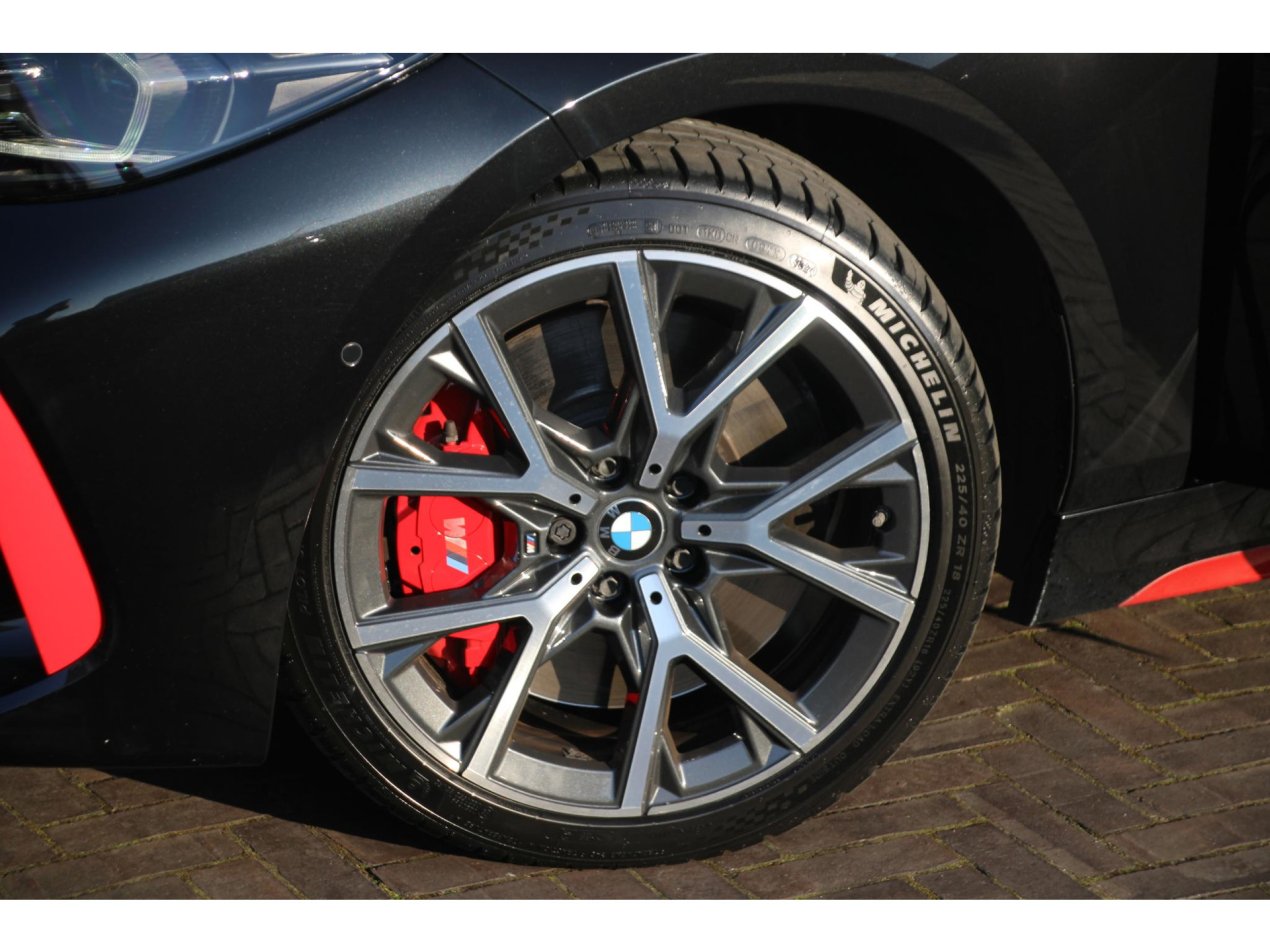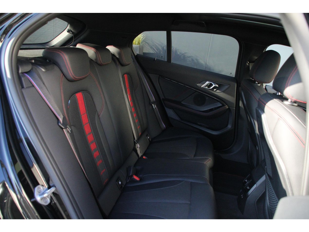 De geweldige details in de uitvoering van 128ti maken dit unieke model helemaal af. De sportieve contrastkleur rood vindt u aan de buitenkant in de side-skirts, op de grote M-Sport remklauwen, op de air-intakes in de voorbumper én de achterbumper en de originele logo's net voor de achterwielen. De prachtige 18 inch wielen zijn exclusief voor de 128ti en zie je dus niet op andere modellen. Dit exemplaar is verder compleet met M-Sport achterspoiler, panorama-dak, donkere ruiten achter en extra donker uitgevoerde, adaptieve LED-koplampen.