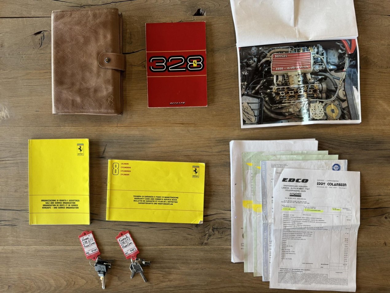 Op 25 juli 1989 is deze prachtige GTS geleverd door Ferrari Dealer Fritz Leier AG in Stein (Zwitserland) aan een heer in St. Moritz. Het betreft een officieel door IFS Importation Ferrari Suisse geleverde auto. Naast het de originele set met onderhoudsboekje, handleiding en dealerlijst in de lederen Ferrari-documentenmap, zijn er ook een recent taxatierapport en diverse facturen voorhanden.