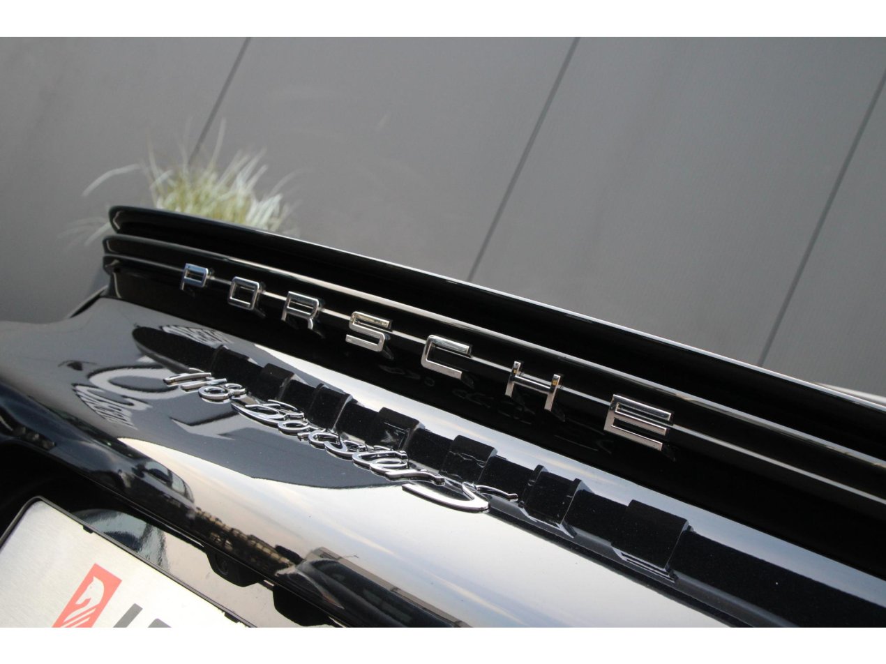 Deze Porsche 718 Boxster S is uitgevoerd in Diepzwart metallic – een kleur die kracht en klasse uitstraalt. De schitterende zilveren Carrera S velgen, de chrome modelaanduiding en de originele sportuitlaat maken het geheel compleet en geven de auto een sportieve, exclusieve uitstraling.