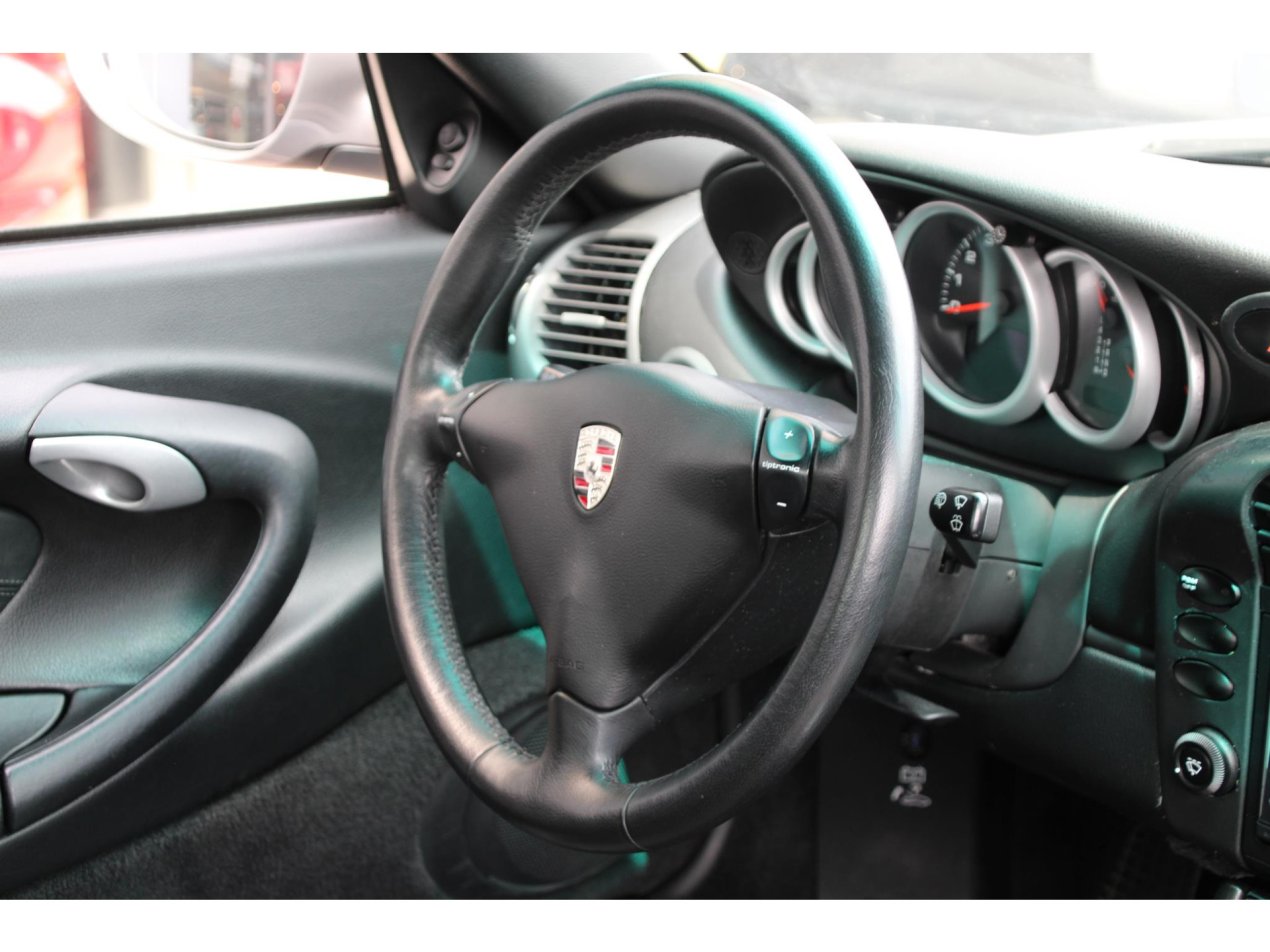 Deze Porsche is voorzien van een grijze metallic lak wat erg goed bij deze auto past. Onder de auto zitten originele GT3 velgen gemonteerd wat zorgt voor een sportieve uitstraling. Het interieur bestaat uit zwartlederen sportstoelen die voldoende ondersteuning bieden tijdens het rijden maar ook nog eens erg comfortabel zijn. Op het stuur zit aan beide kanten een knop waarmee, wanneer gewenst, de versnellingsbak handmatig bediend kan worden. Verder is de auto voorzien van automatische airconditioning en een radio/navigatie systeem met Bluetooth. Bij een kilometerstand van 87.564km is de motor vervangen, en dat is te zien. Zodra je de motorkap opent ziet alles er nog zo goed als nieuw uit. Dit alles samen staat garant voor heel wat mooie kilometers! Is dit dé auto waar u naar op zoek bent, neem dan contact met ons op voor het maken van een afspraak voor bezichtiging.