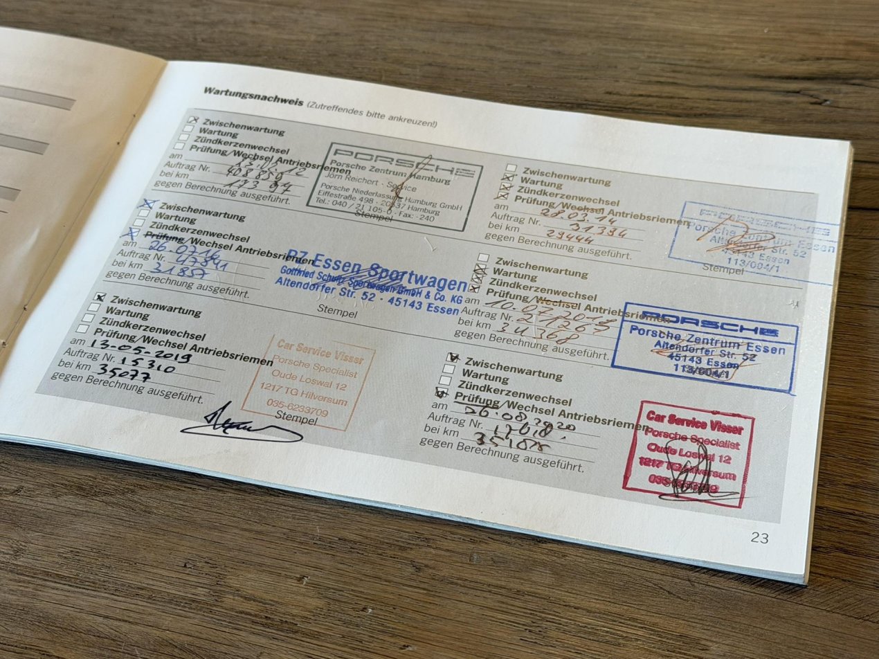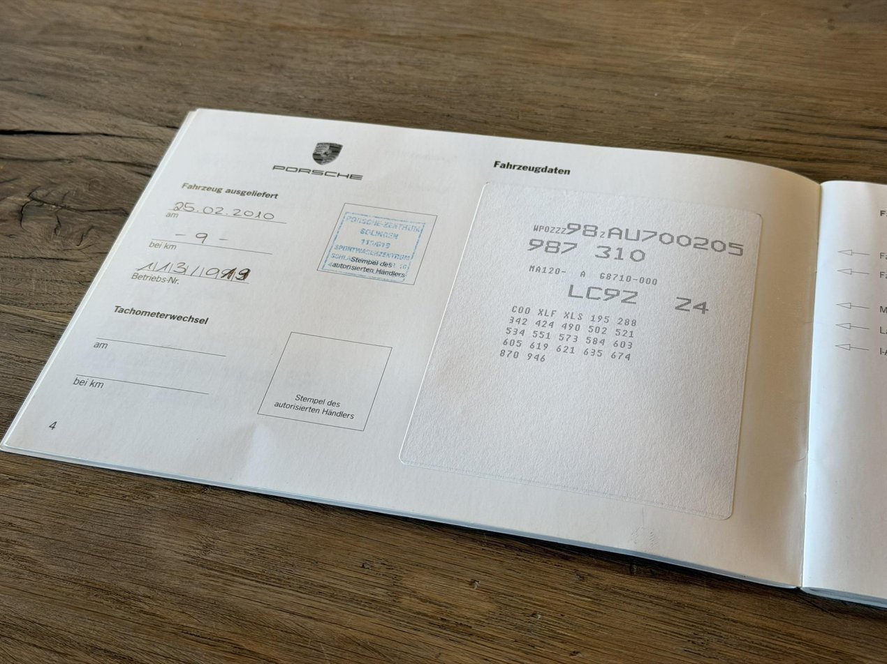 Deze Boxster werd in februari 2010 geleverd door Porsche Zentrum Solingen, in de regio Düsseldorf. Maar liefst vier keer in nog geen 35.000km is er onderhoud gepleegd, uitsluitend bij de officiële Porsche dealer. De eerste beurt in Nederland is uitgevoerd bij 35.077km door Car Service Visser, een bekende collega als het gaat om Porsche Specialisten. In Nederland is er slechts 1 eigenaar geweest van deze Boxster en deze heeft bij Ibalo Sportscars (heel verrassend :-) ) een nieuwere zwarte Porsche Boxster terug gekocht. In de ruim 5 jaar dat de klant de Boxster heeft gereden, is er bij Car Service Visser 7 maal onderhoud gedaan. Zoals je mag verwachten is de gave tweezitter in perfecte conditie.