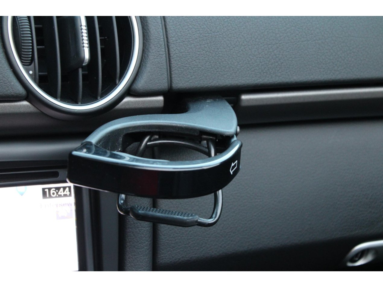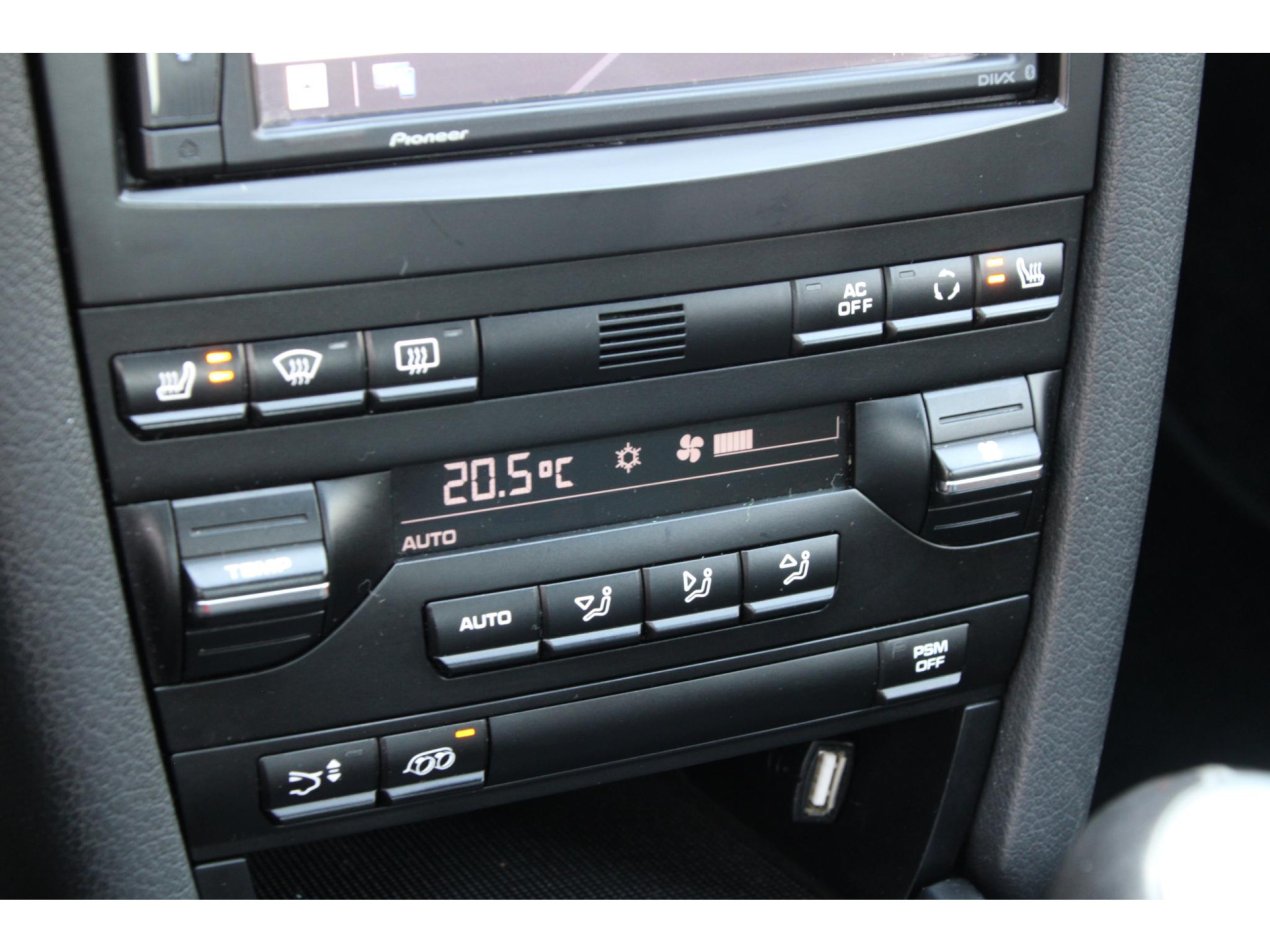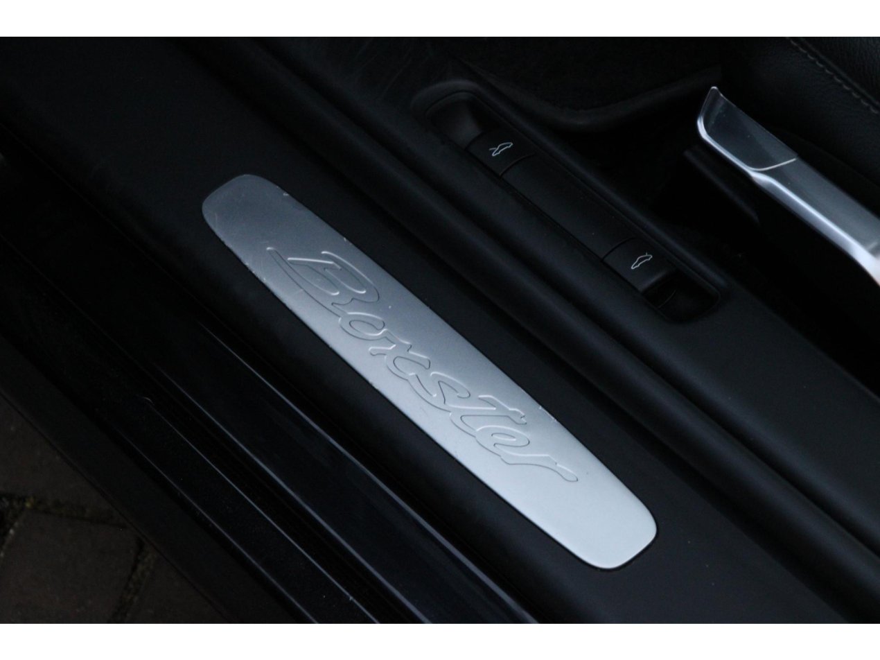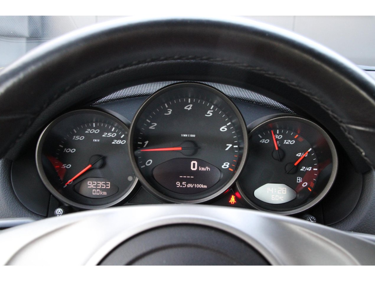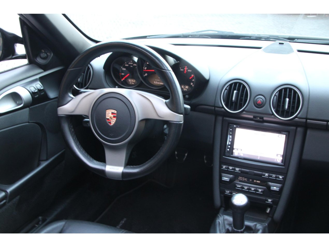 Een Boxster is een echte stuurmansauto, al hoeft dat niet te betekenen dat deze spartaans moet zijn. Op dit exemplaar is met dan ook lekker in de optielijst aan het selecteren gegaan. De 18 inch velgen van de Boxster S zijn geselecteerd, net als de Bi-Xenon koplampen en het genoemde sport-uitlaatsysteem. Deze laatste is gelijk te herkennen aan de twee chrome eindstukken van serieuze diameter. Ook in het interieur zijn tal van fijne opties gekozen, denk hierbij aan stoelverwarming, climate control, cruise control, lederen bekleding en natuurlijk het fijne 3-spaaks sportstuur.