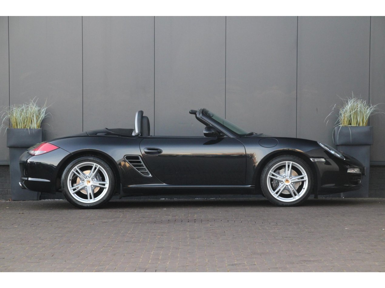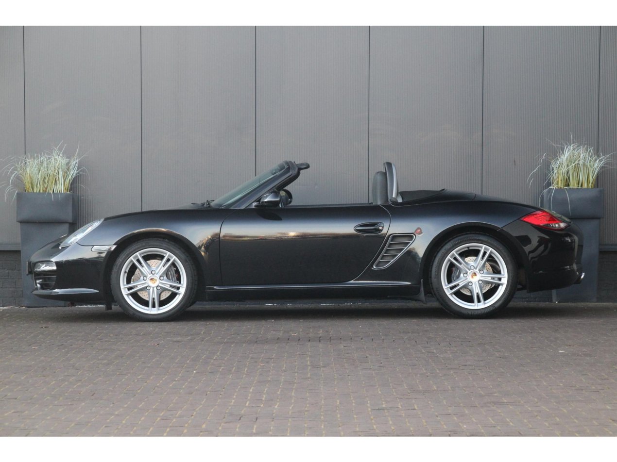 Deze Boxster in Basalt Zwart metallic met zwart lederen bekleding is een tijdloze verschijning en zeer herkenbaar Porsche-design. Met kofferruimte voor én achterin, is het de meest bruikbare roadster in zijn klasse. Dit exemplaar is één van de eerste modellen van het facelift-type dat in 2009 op de markt kwam. Met andere luchtinlaten, LED parkeerverlichting en de koplampen met geïntegreerde knipperlichten een frisse verschijning.