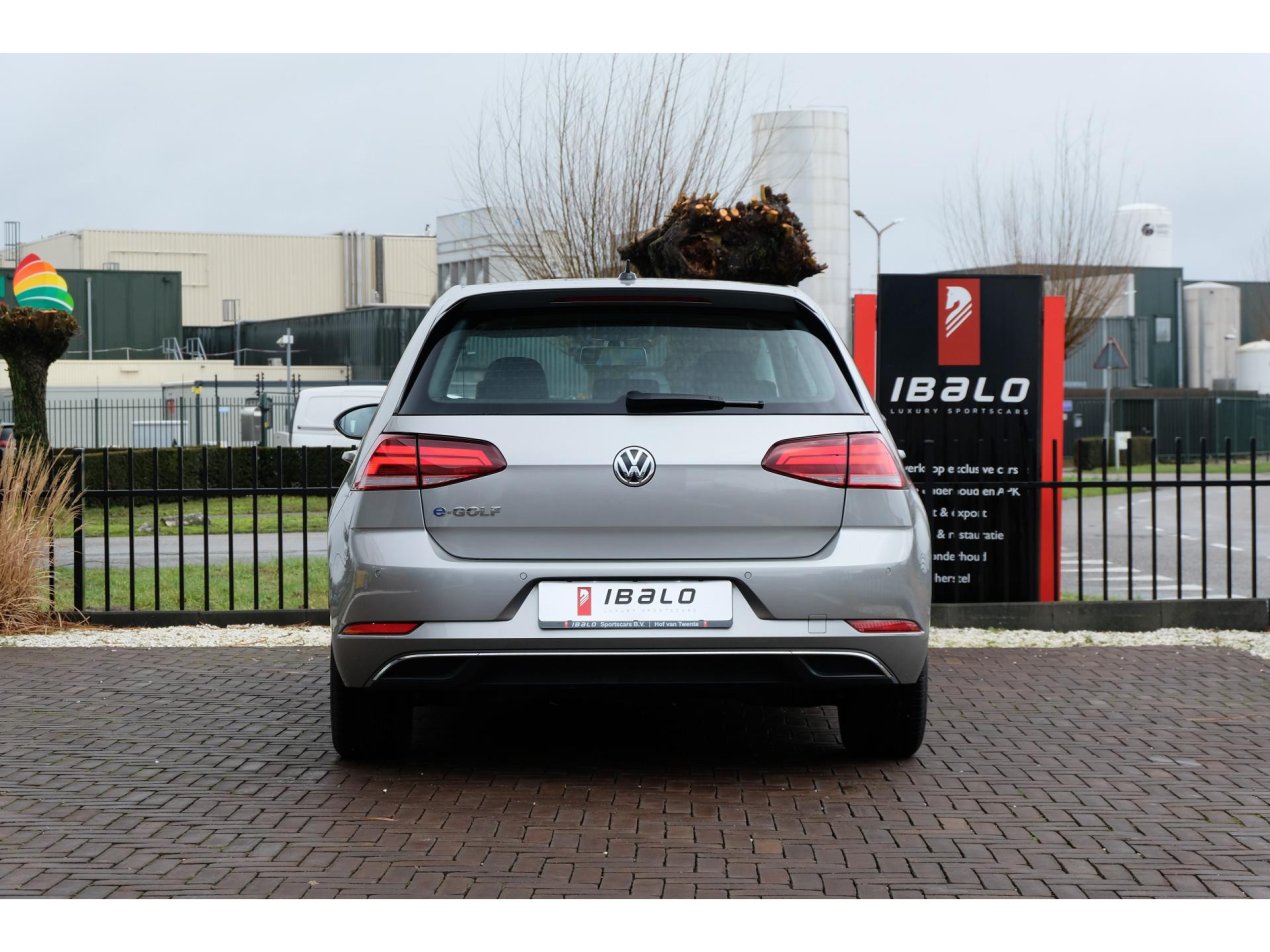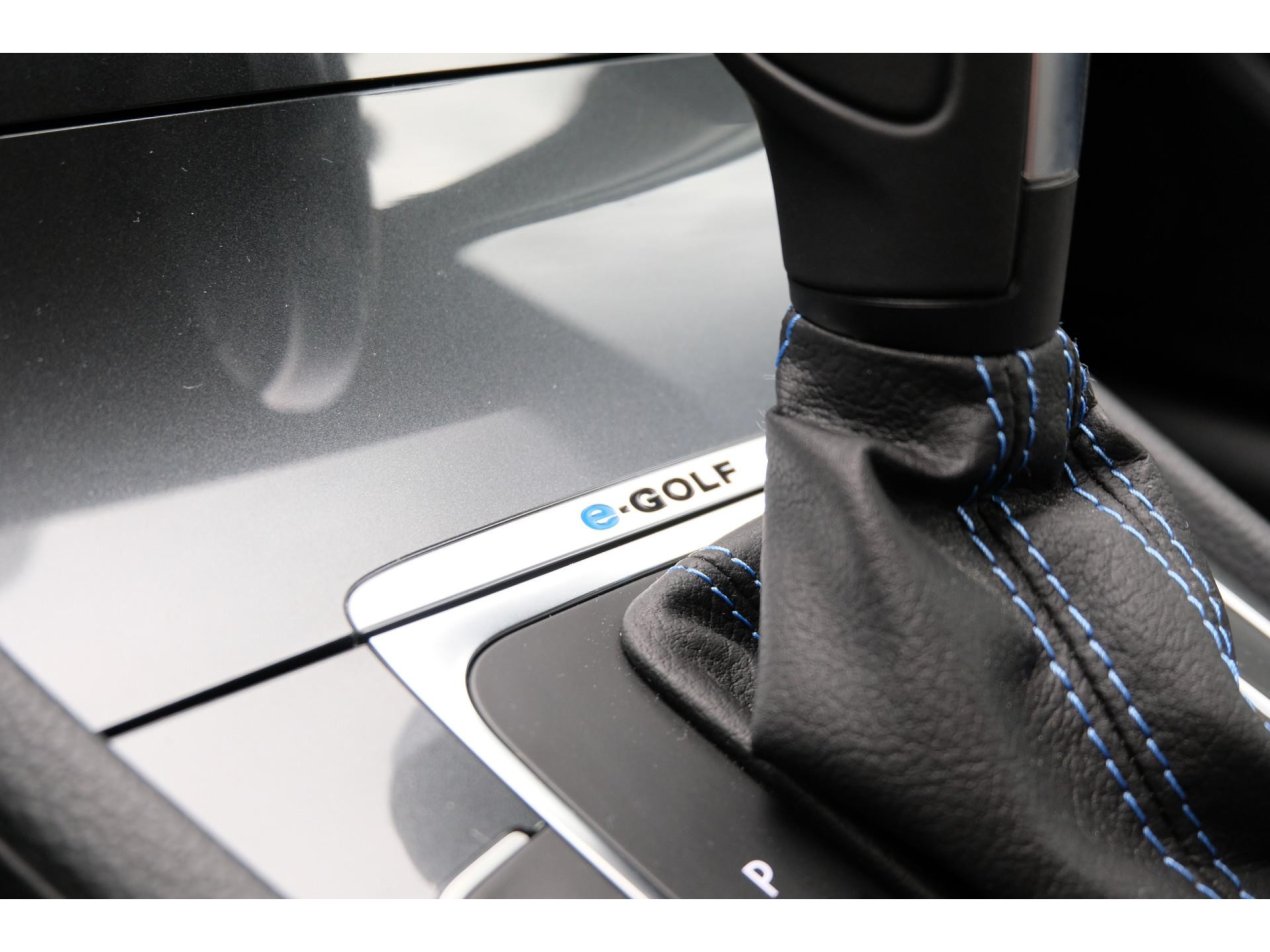 Onze e-Golf hebben wij zelf uit Duitsland geïmporteerd, is voorzien van vele leuke opties zoals het navigatiesysteem met Apple CarPlay/Android Auto, elektronisch geregelde airco, stoelverwarming, voorruitverwarming en een adaptieve cruise control. De 16 inch lichtmetalen velgen hebben een vrij dicht ontwerp waarmee de luchtweerstand lager is wat meehelpt aan het vergroten van het rijbereik. Een e-Golf is voorzien van een 35,8kWh accu, goed voor een praktijk bereik van 190km. De auto wordt geleverd met een thuislaadkabel voor een normaal 230v stopcontact.